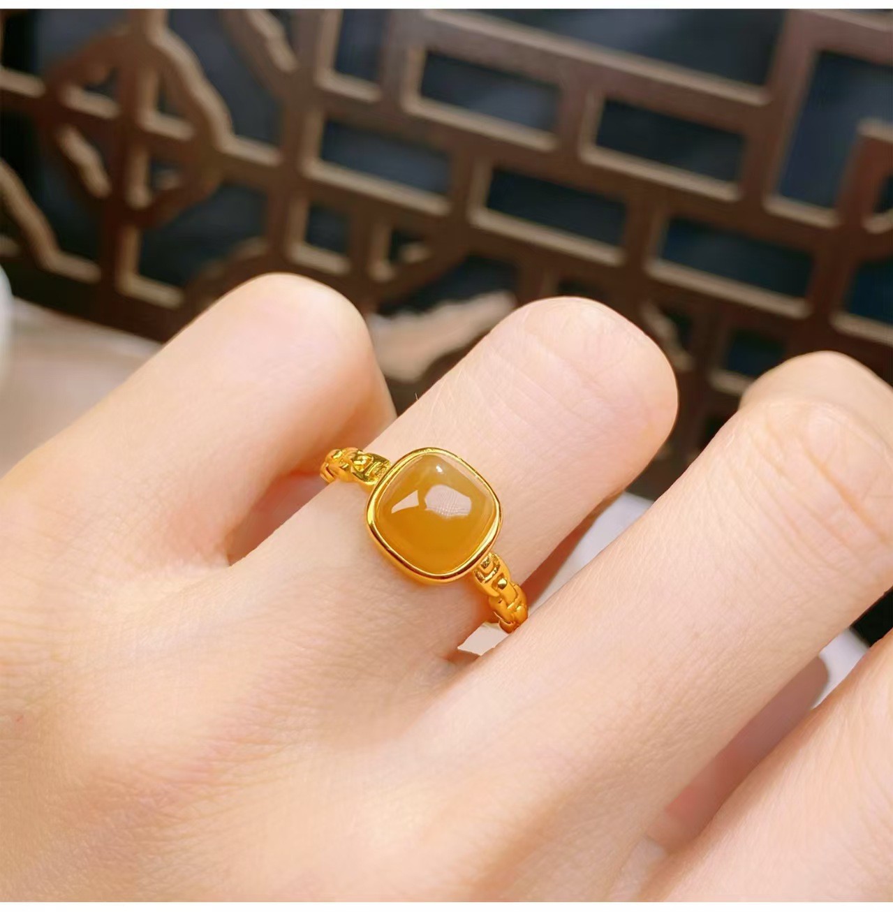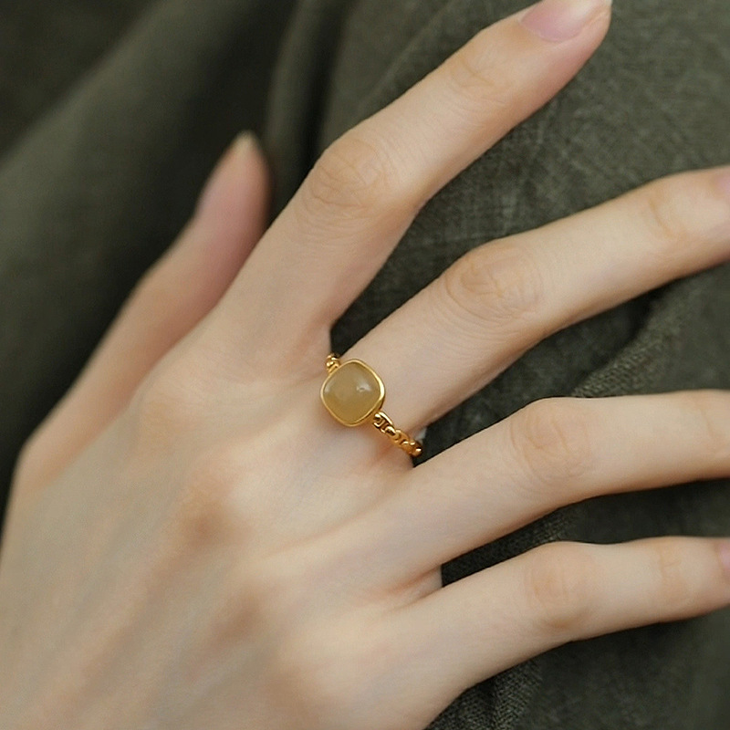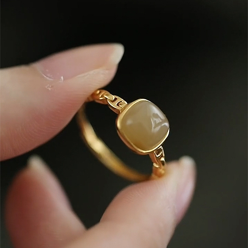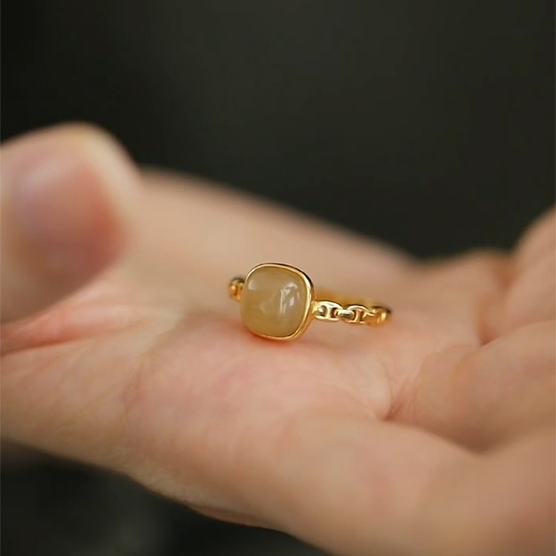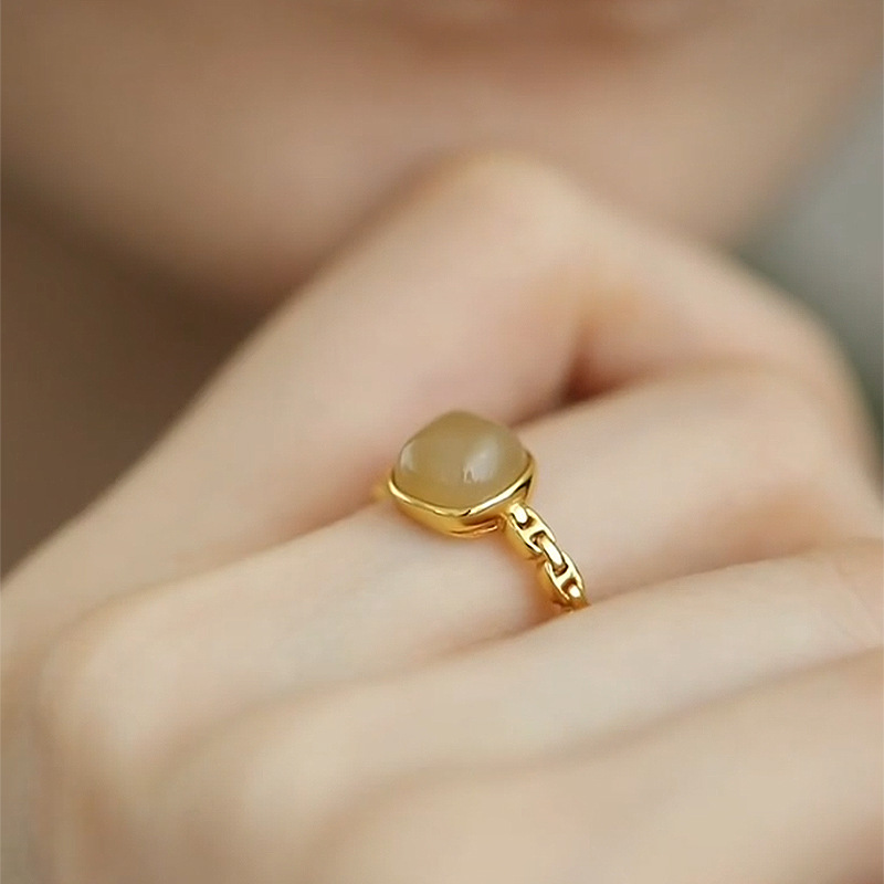 小红书同款和田糖玉戒指女新款精致温柔方糖气质指环