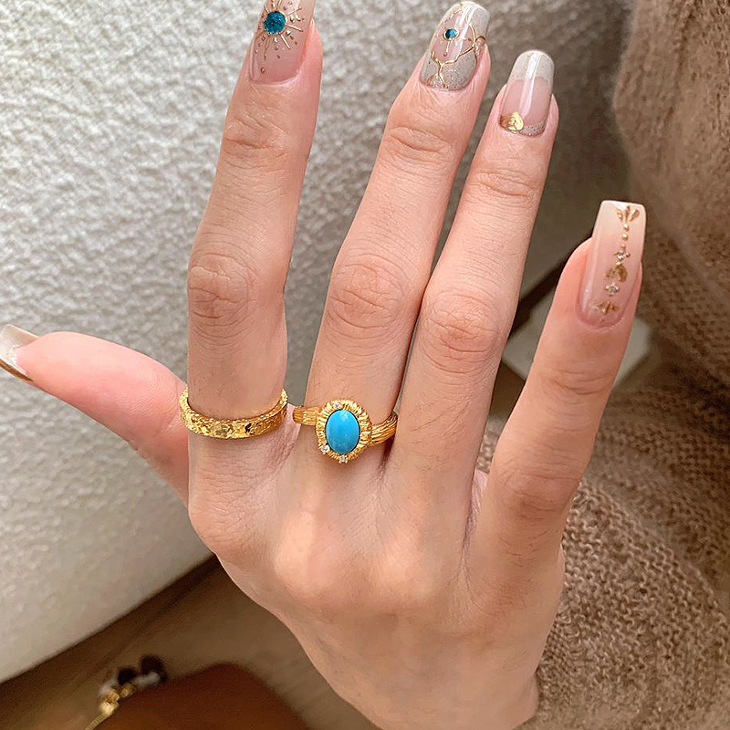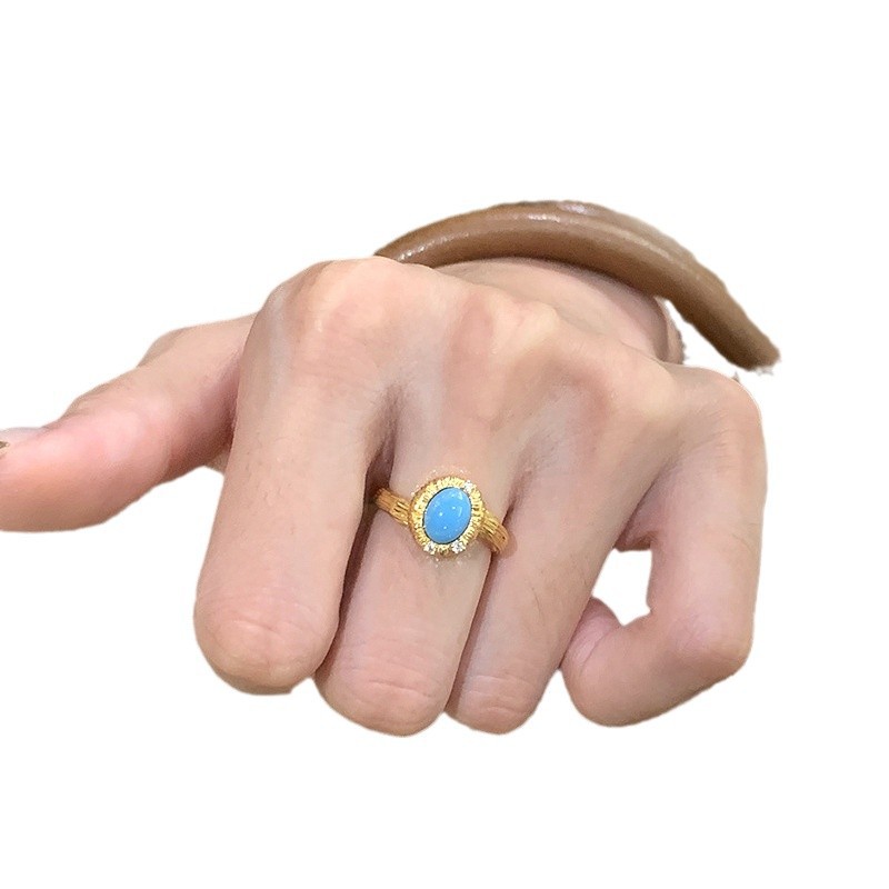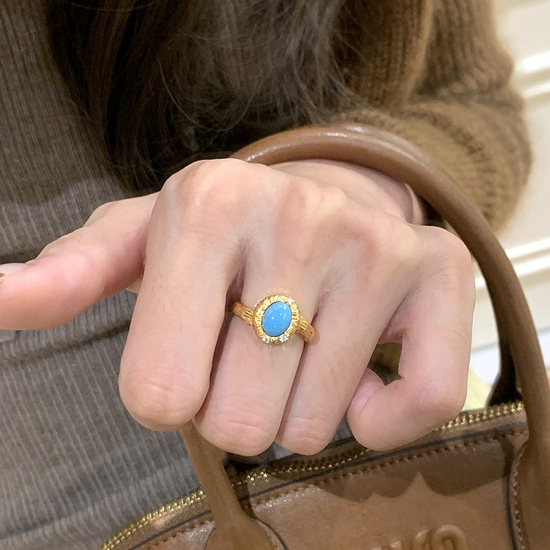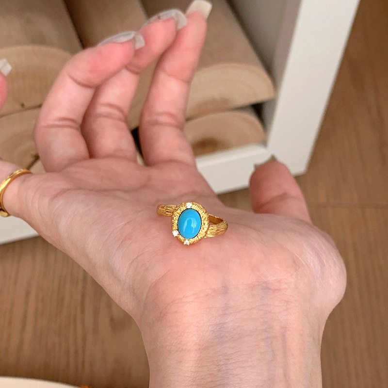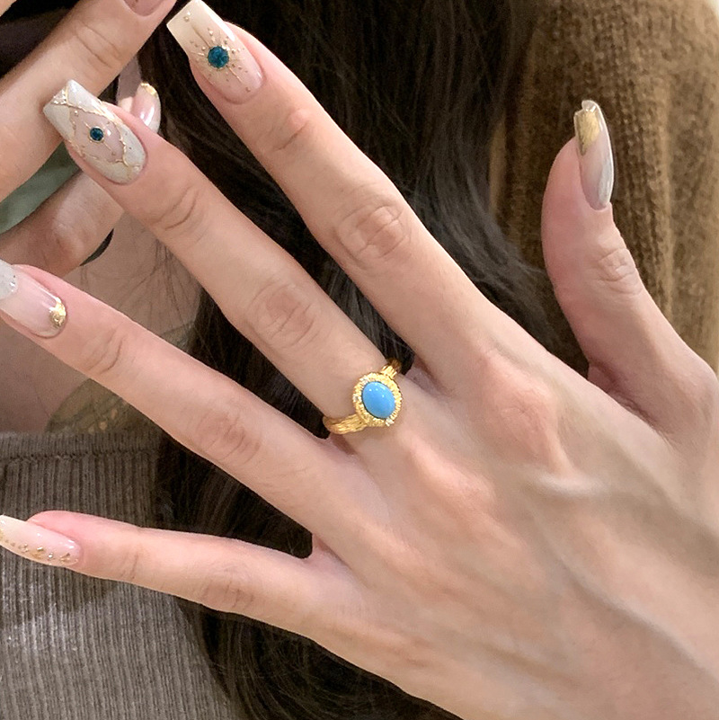 小红书爆款复古蓝松戒指女时尚轻奢绝美显白中古绿松指环