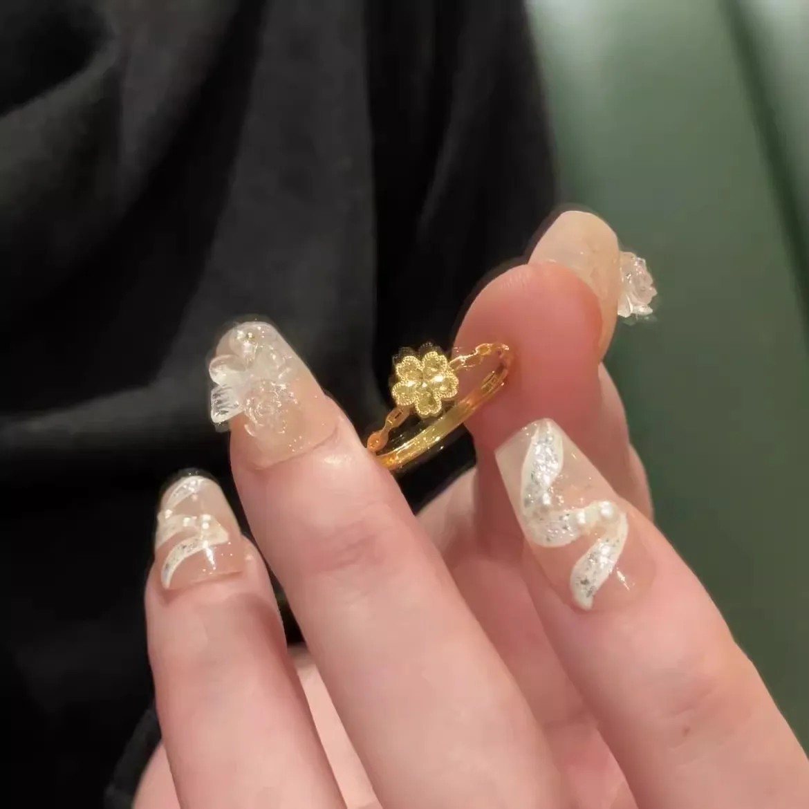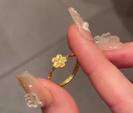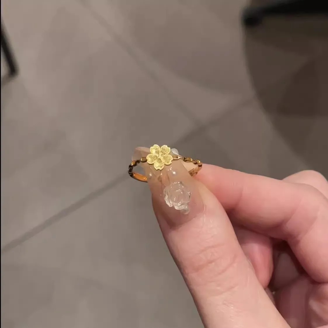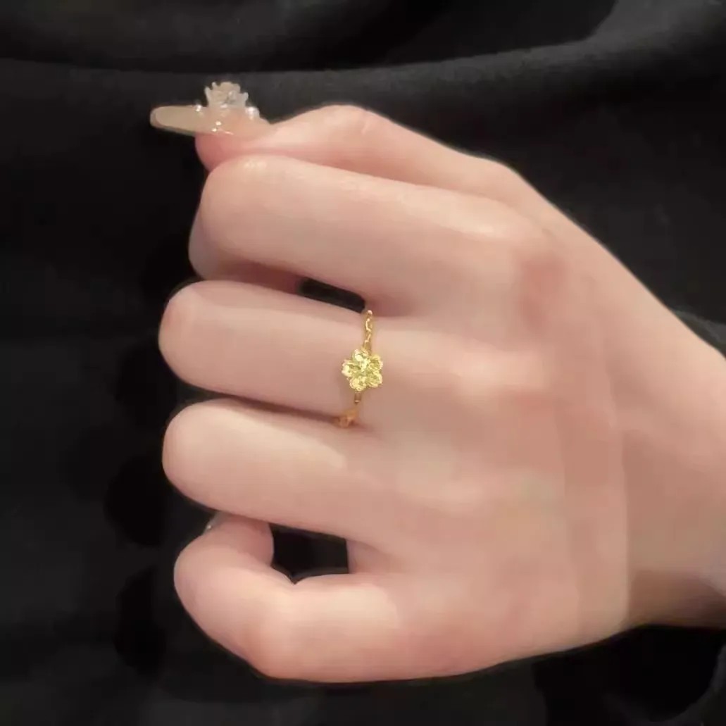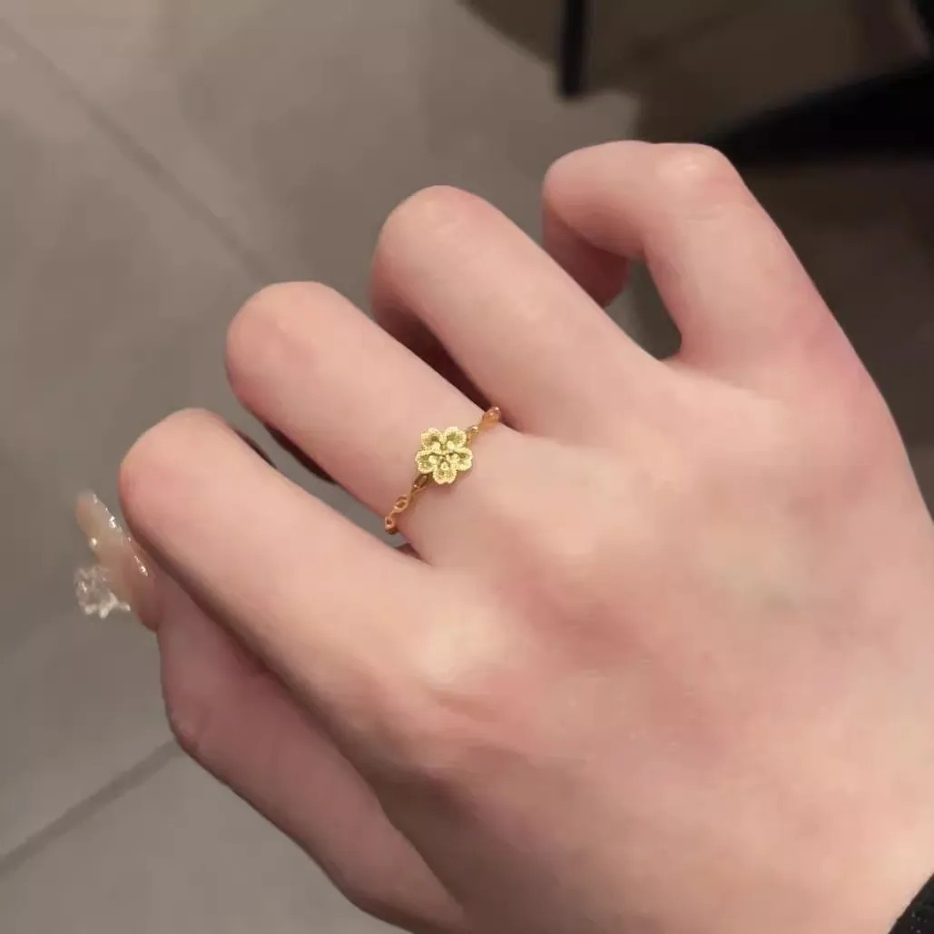 小红书爆款爆闪五叶小花戒指2025新款古法锤纹碎冰冰小金花指环