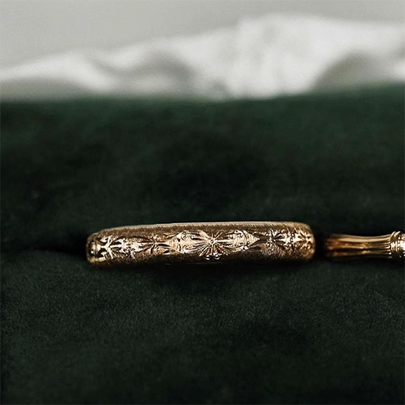 小红书爆款古法拉丝藤蔓四叶花戒指超重工金色满钻爆闪精致指环女