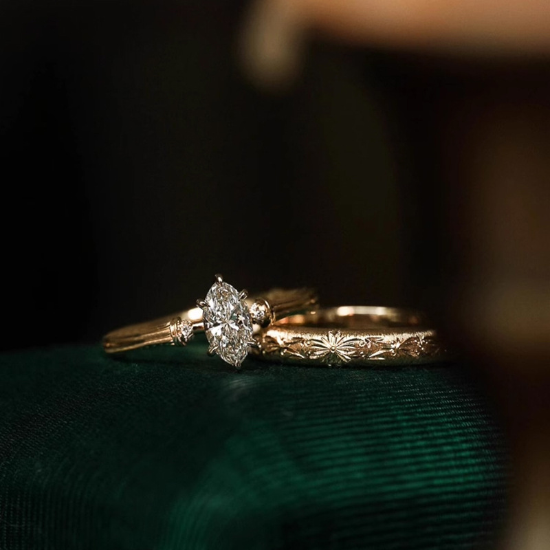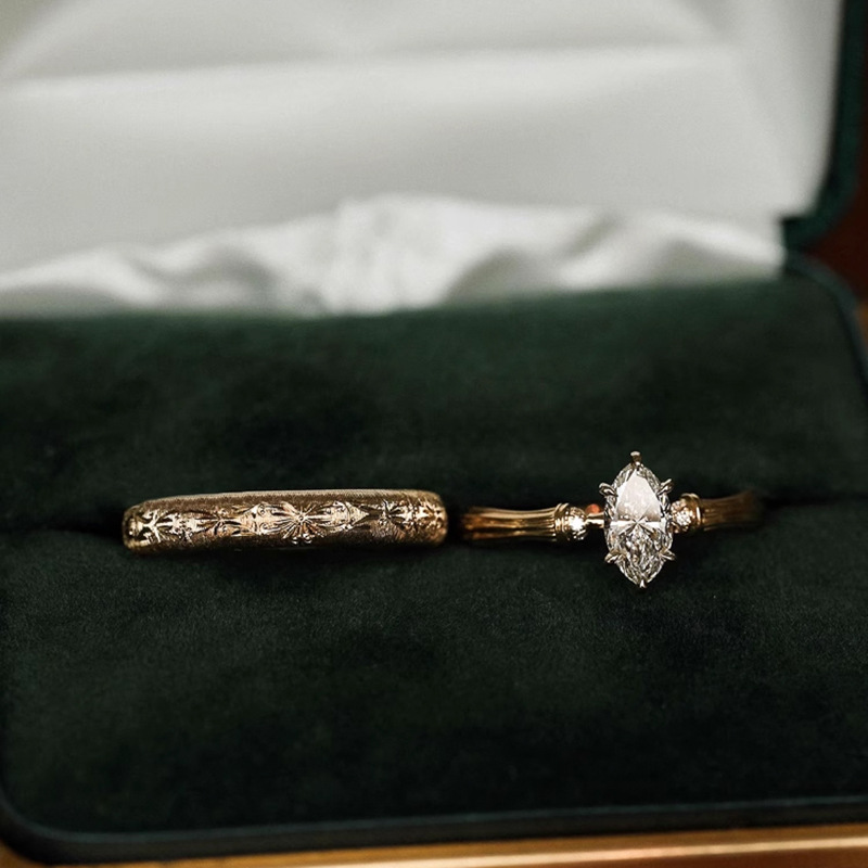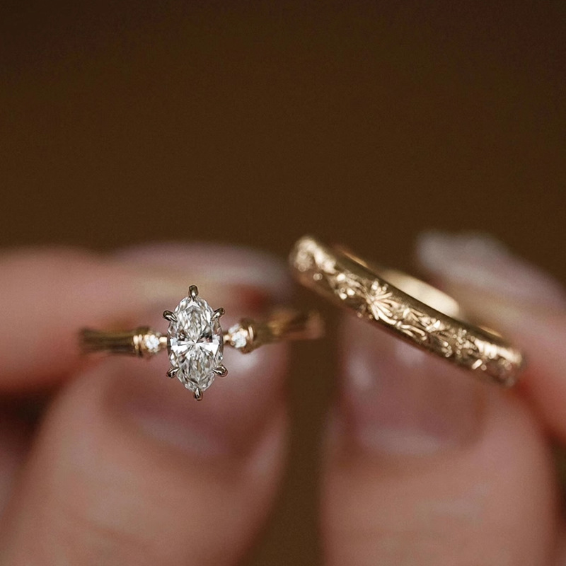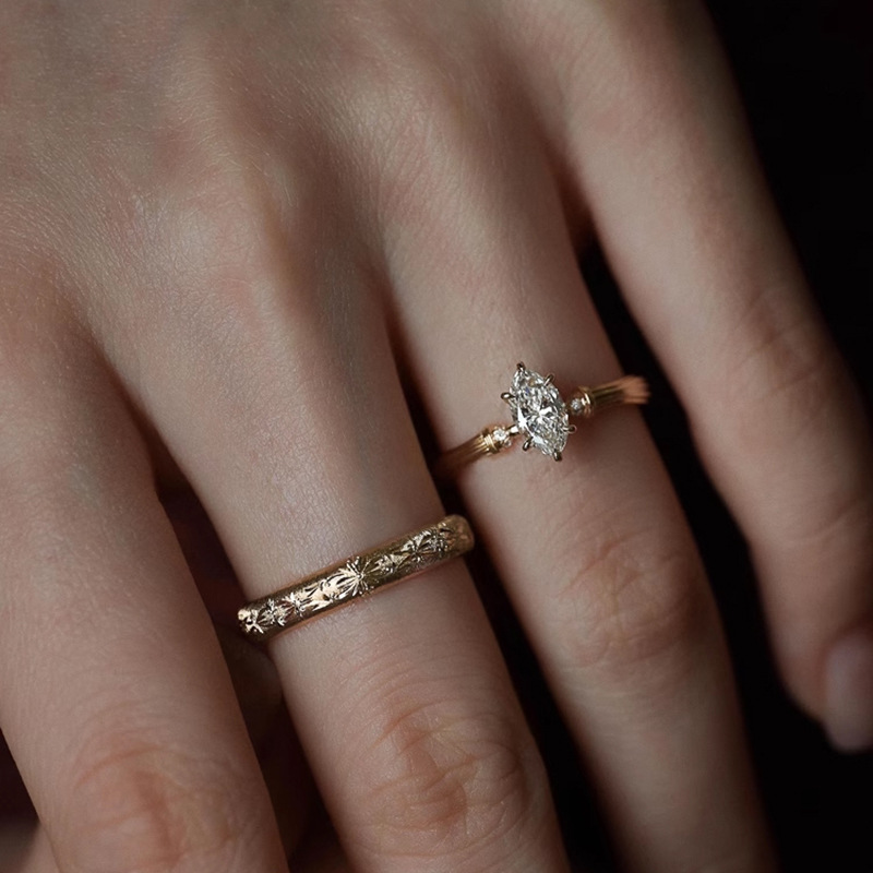 小红书爆款拉丝雕花素圈戒指2025新款马眼钻菱形精致指环