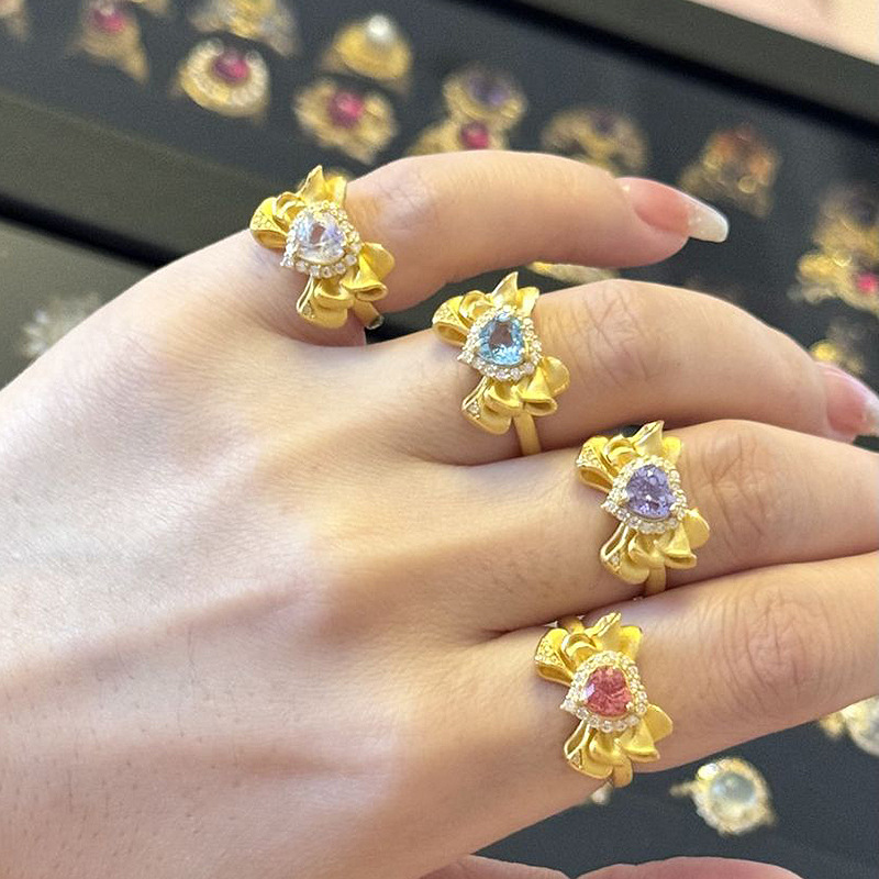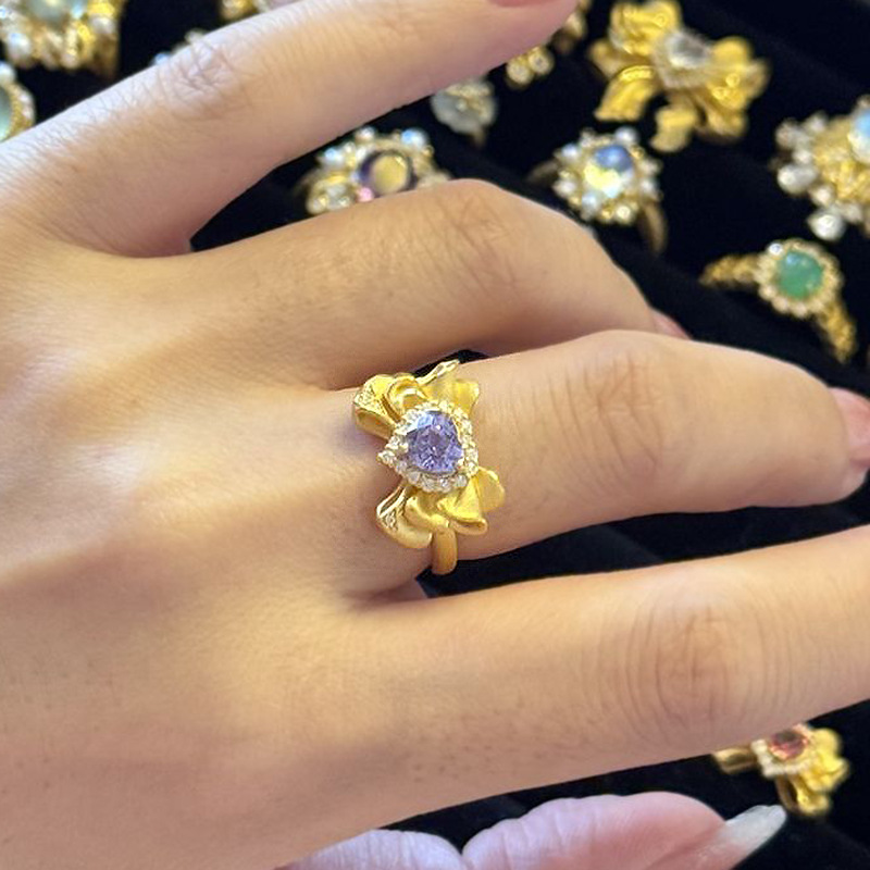 HJZ-0428 拉丝蝴蝶结爱心戒-紫钻