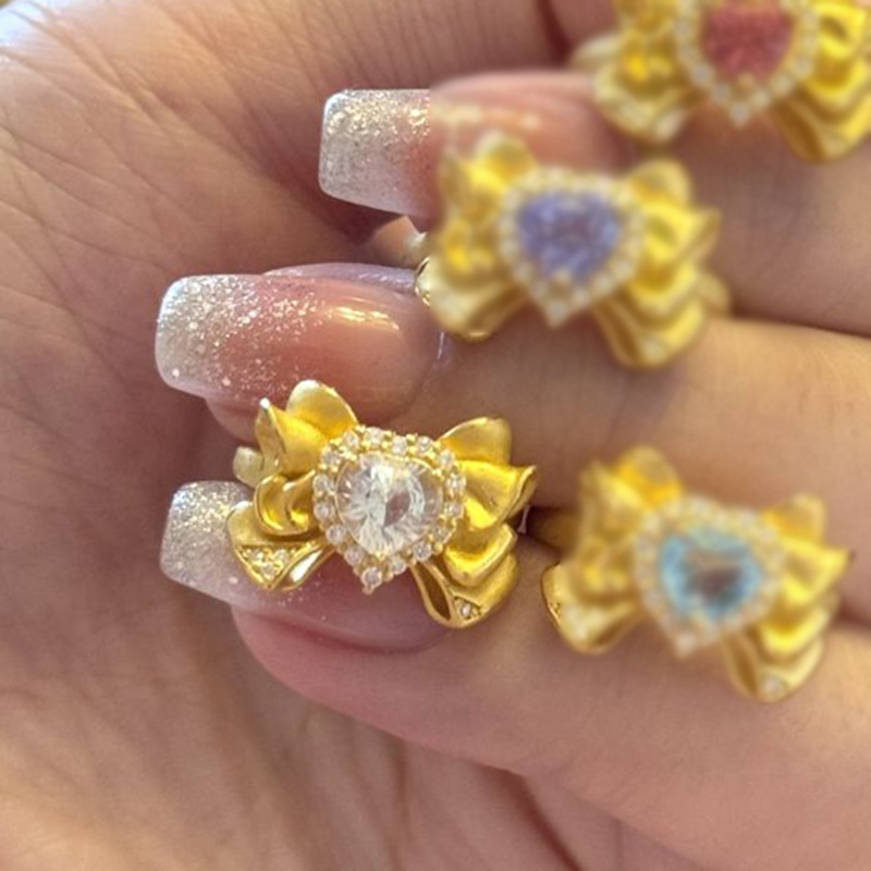 小红书爆款拉丝蝴蝶结爱心戒指轻奢百搭可爱满钻桃心指环