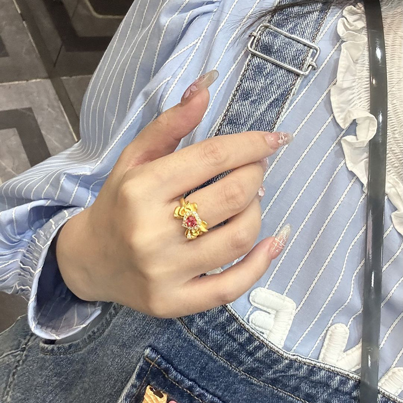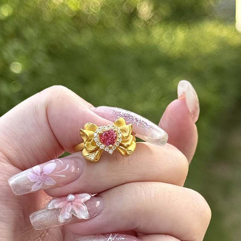 HJZ-0428 拉丝蝴蝶结爱心戒-红钻