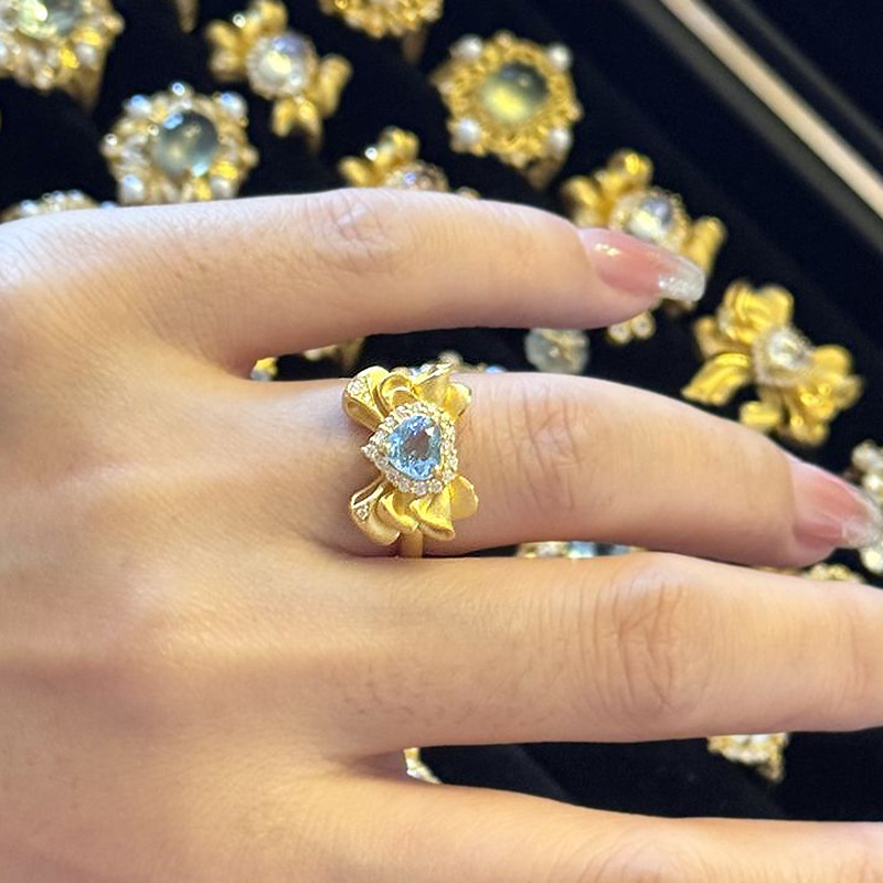 HJZ-0428 拉丝蝴蝶结爱心戒-蓝钻