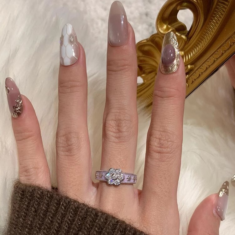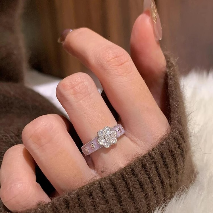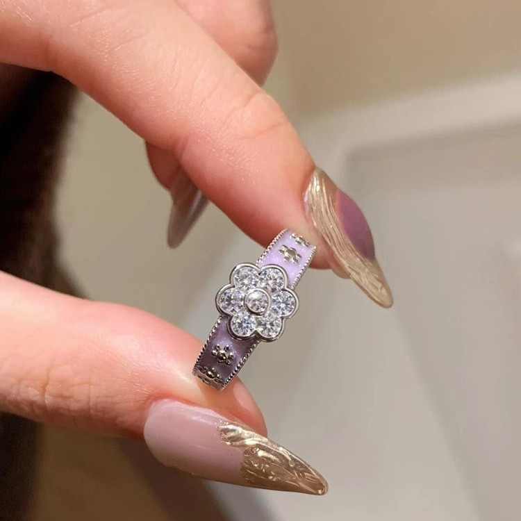 小红书爆款复古紫色滴釉花朵戒指女轻奢高级感精致百搭时尚食指戒