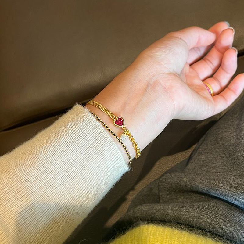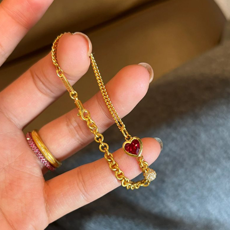 小红书爆款红爱心手链新款高级轻奢精致设计个性百搭宝藏饰品