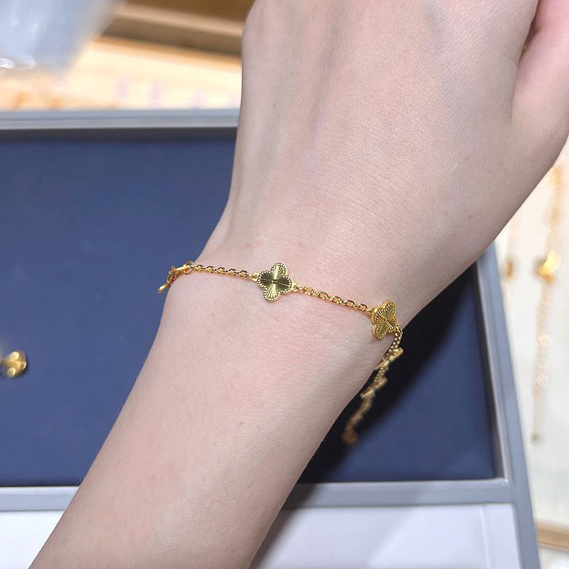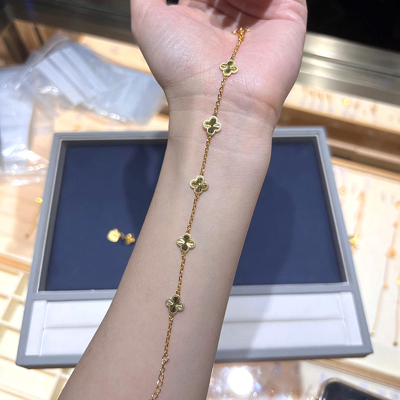 小红书爆款黄金色四叶草手链女时尚轻奢五花手链送女友