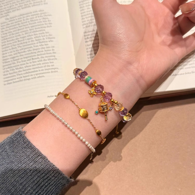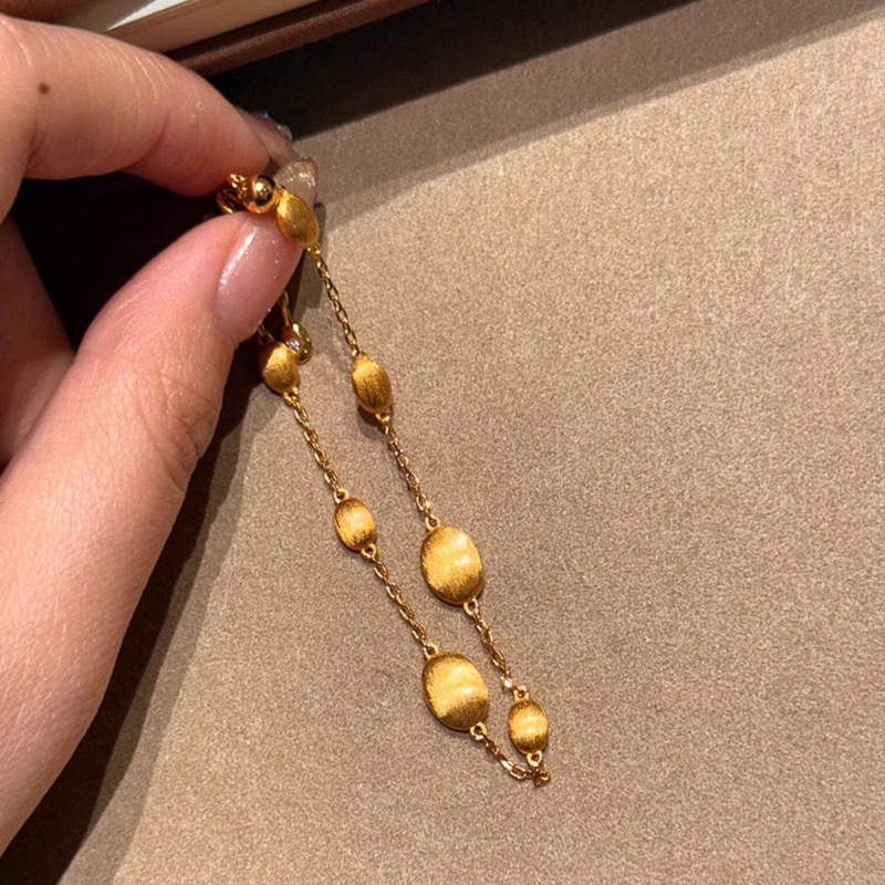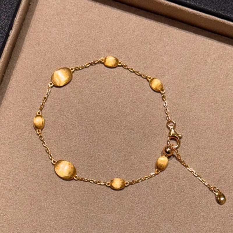 小红书爆款拉丝小金豆手链古法重工意大利简约抽拉调节精致手饰女