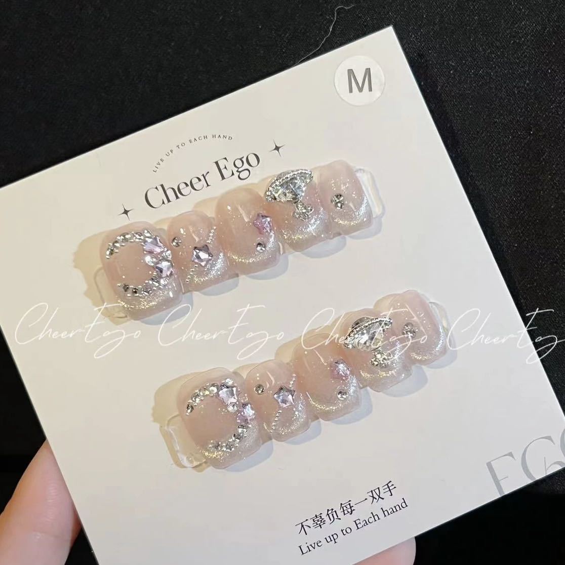 纯手工光疗穿戴甲一眼万年穿戴甲批发成品重复使用美甲贴片可拆卸