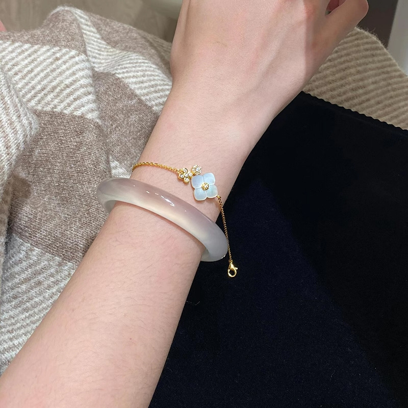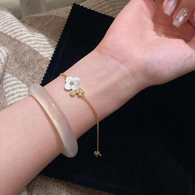 小红书爆款白贝母四叶草手链古法新中式国风清冷感精致百搭手饰品