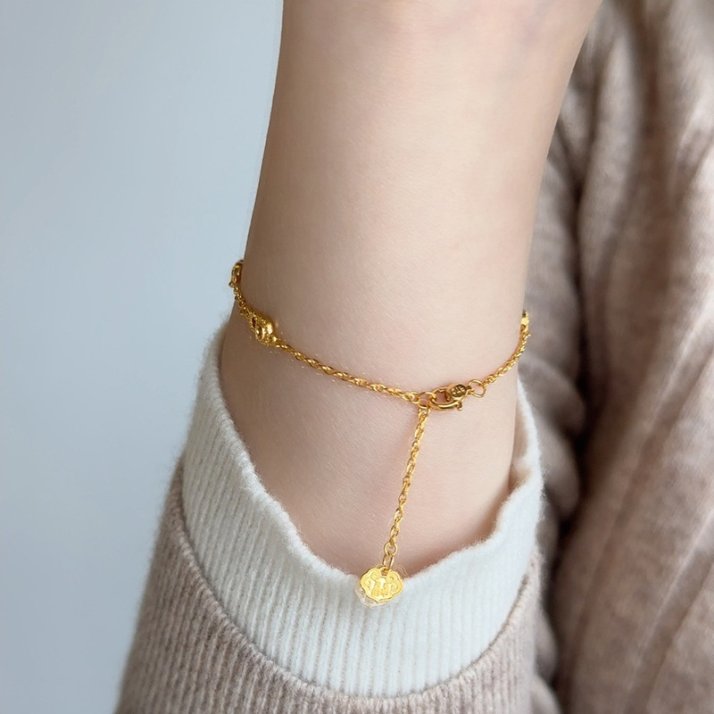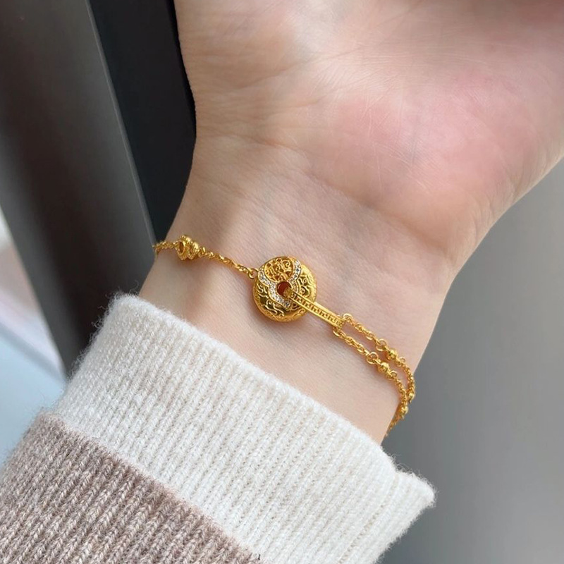 小红书爆款葫芦镂空平安扣手链女复古新中式福禄相随金色闪钻手饰