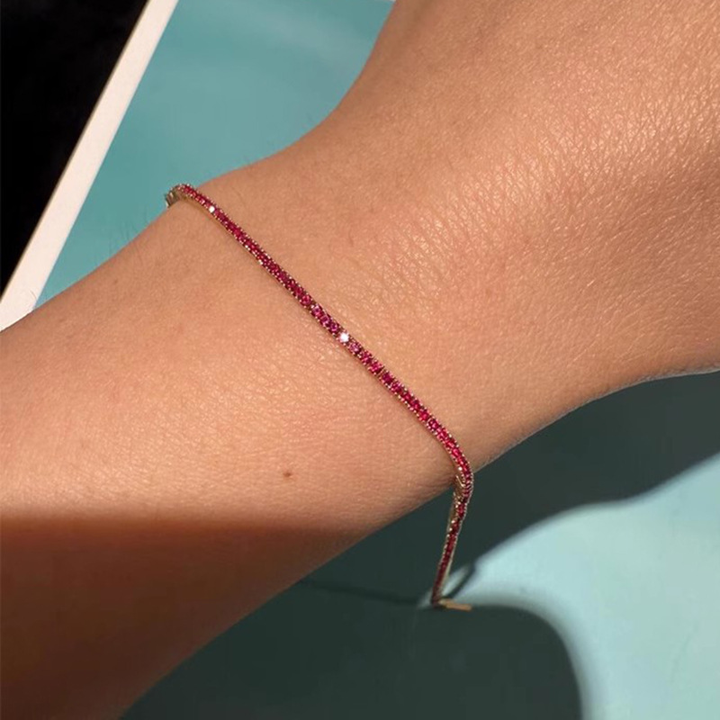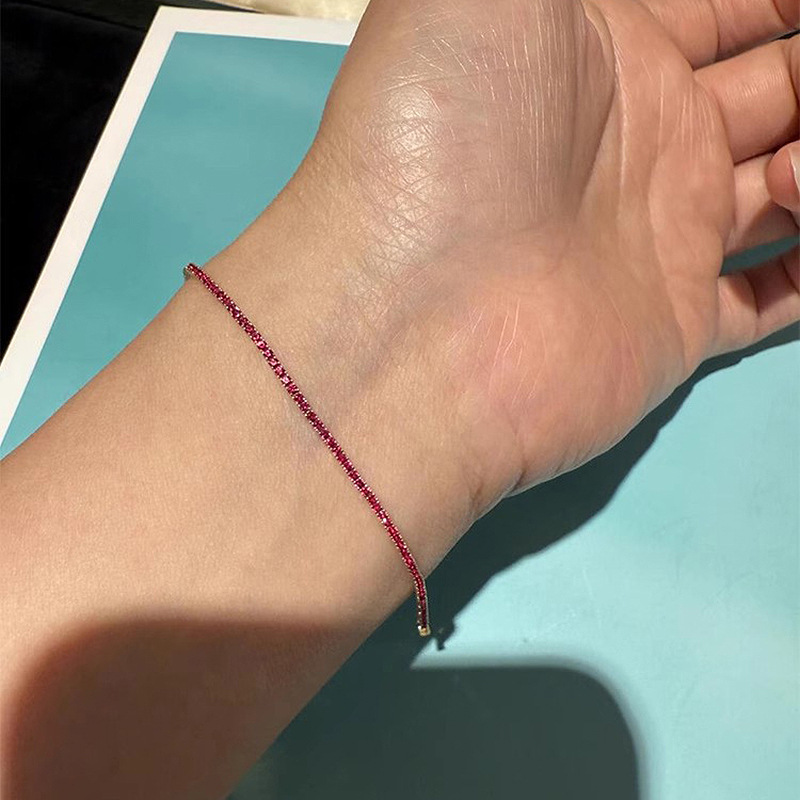 小红书爆款绯红女生满钻手链超闪满钻鸽血红锆石高颜值本命年手饰