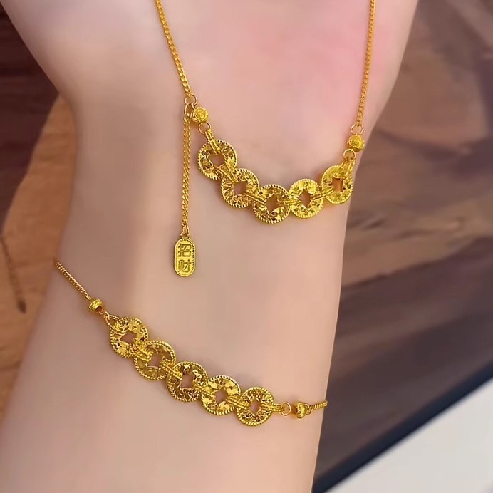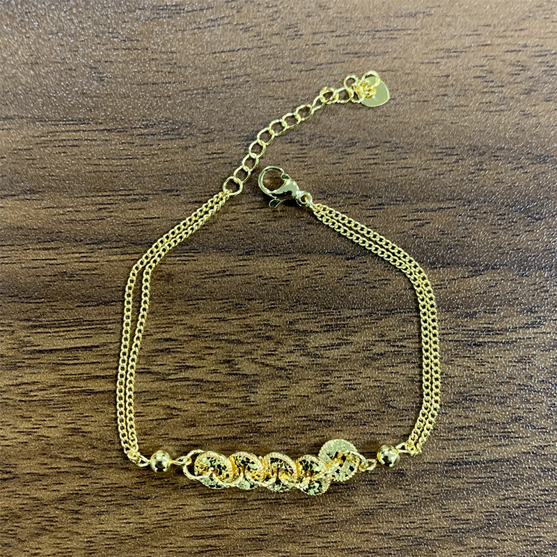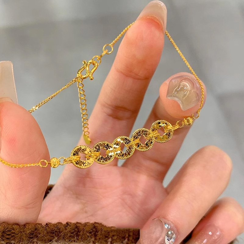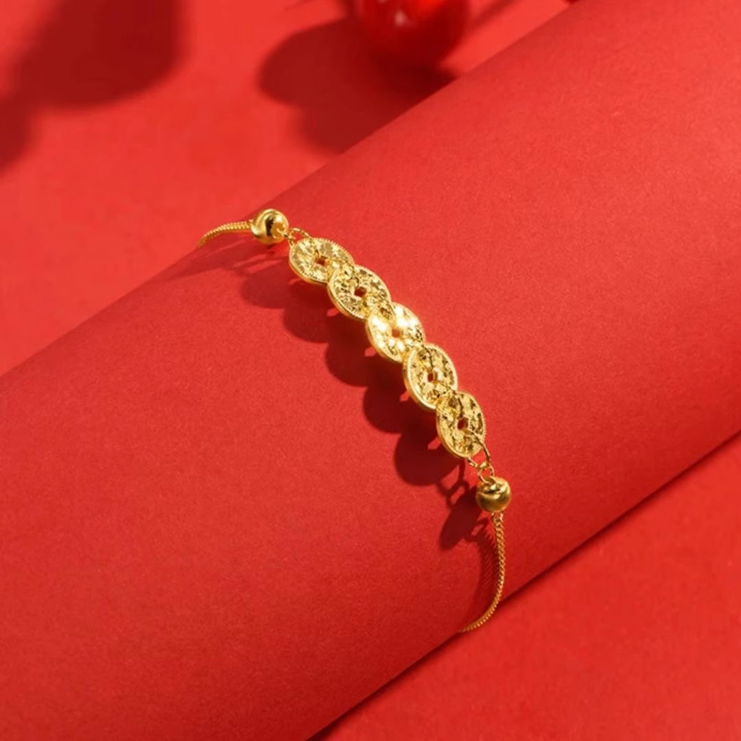 小红书爆款碎碎冰五帝币招财手链2025新款爆闪锤纹碎金钱币手饰品