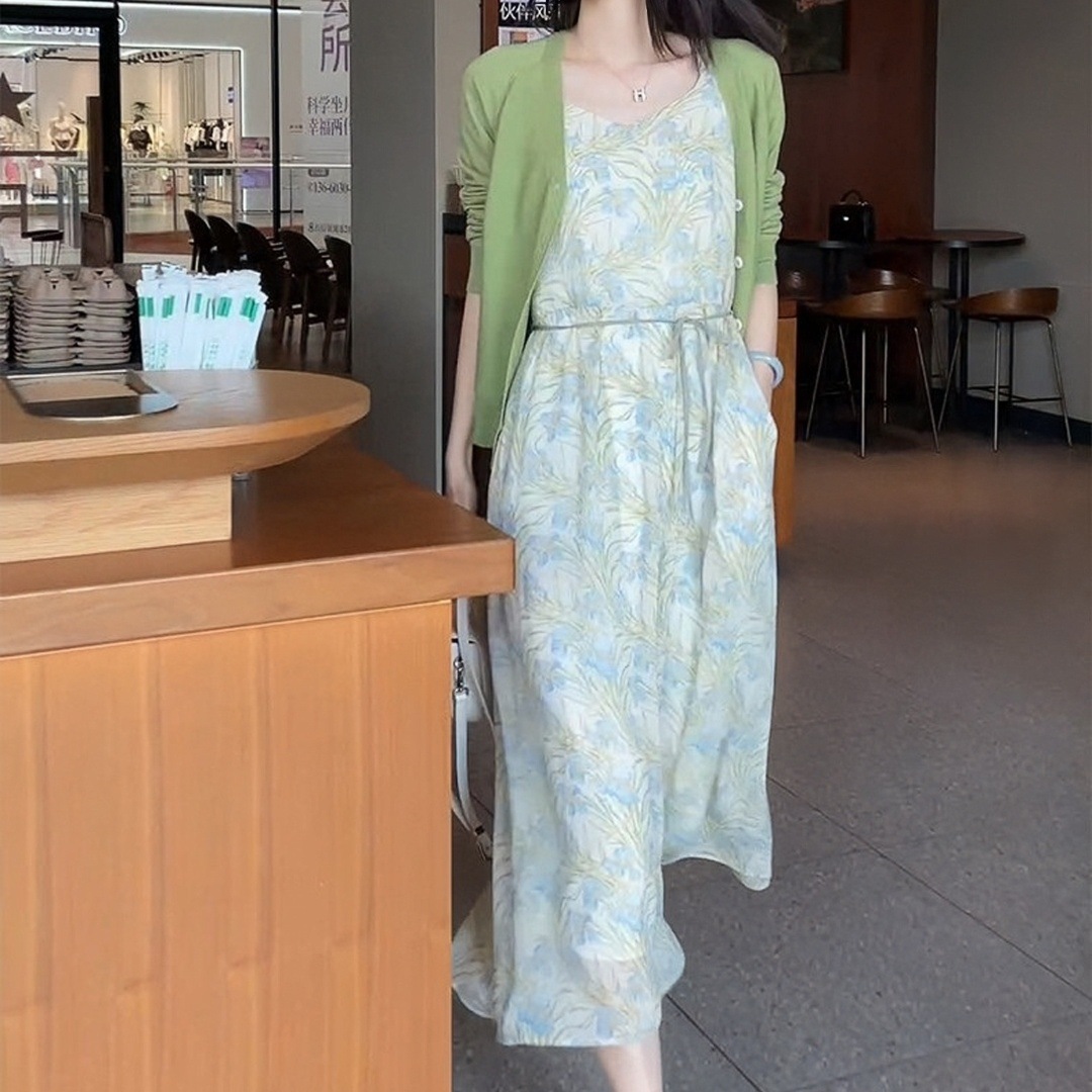 法式度假风碎花吊带连衣裙女夏装新款显瘦防晒开衫裙子两件套