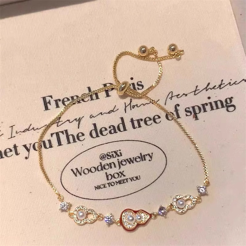 小红书爆款三生福禄葫芦手链新中式镂空珍珠点钻红葫芦高颜值手饰