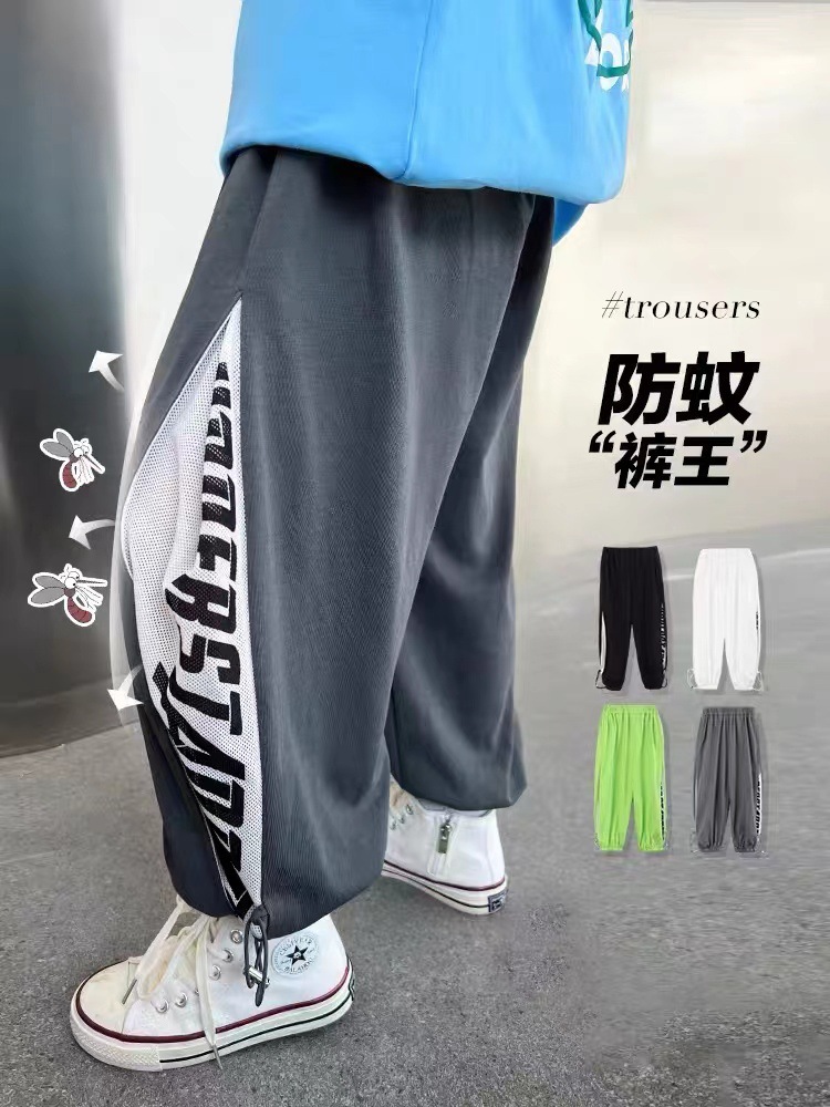 儿童装男童裤子夏季新款中大童帅气运动休闲网布拼接防蚊裤潮