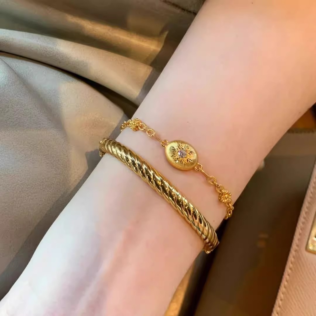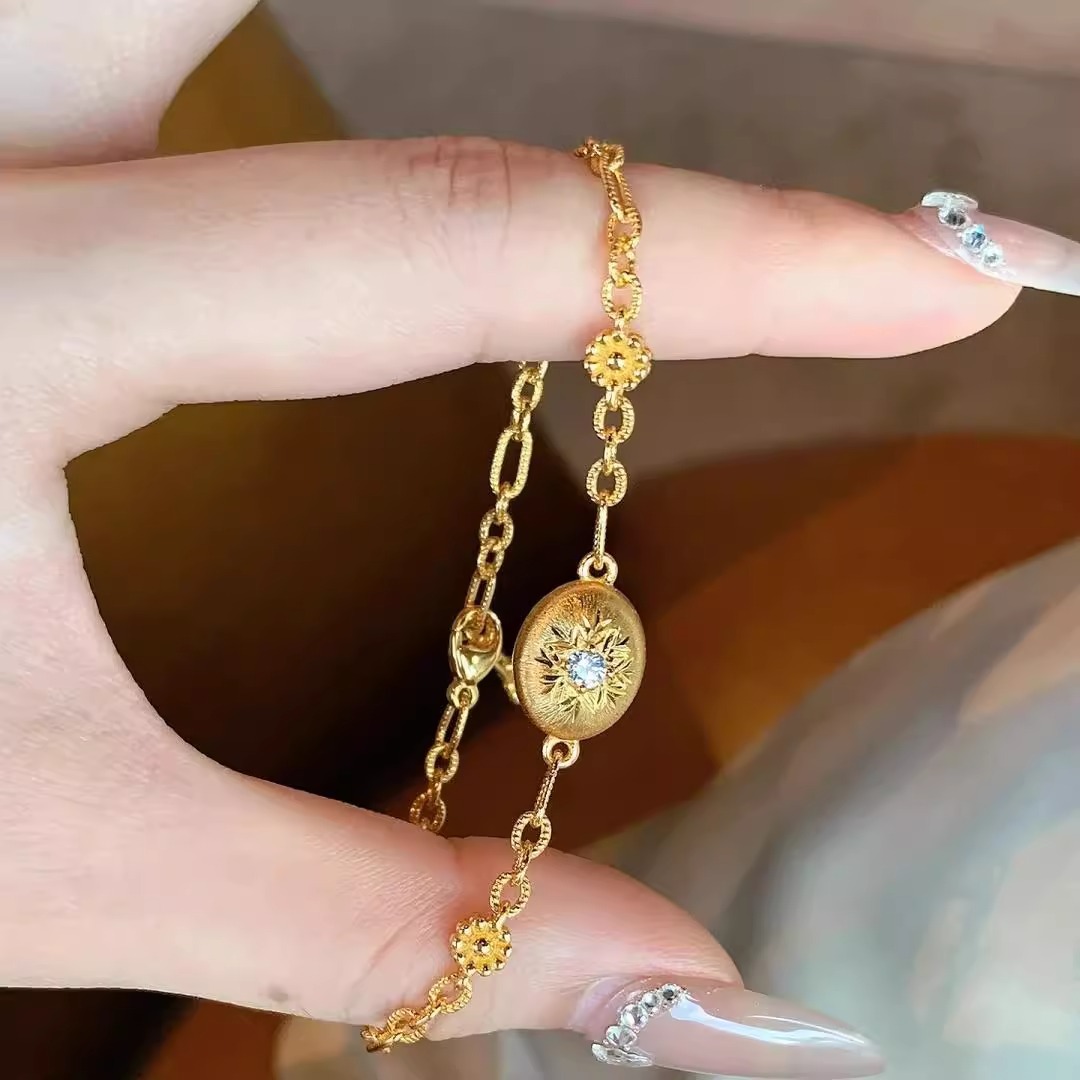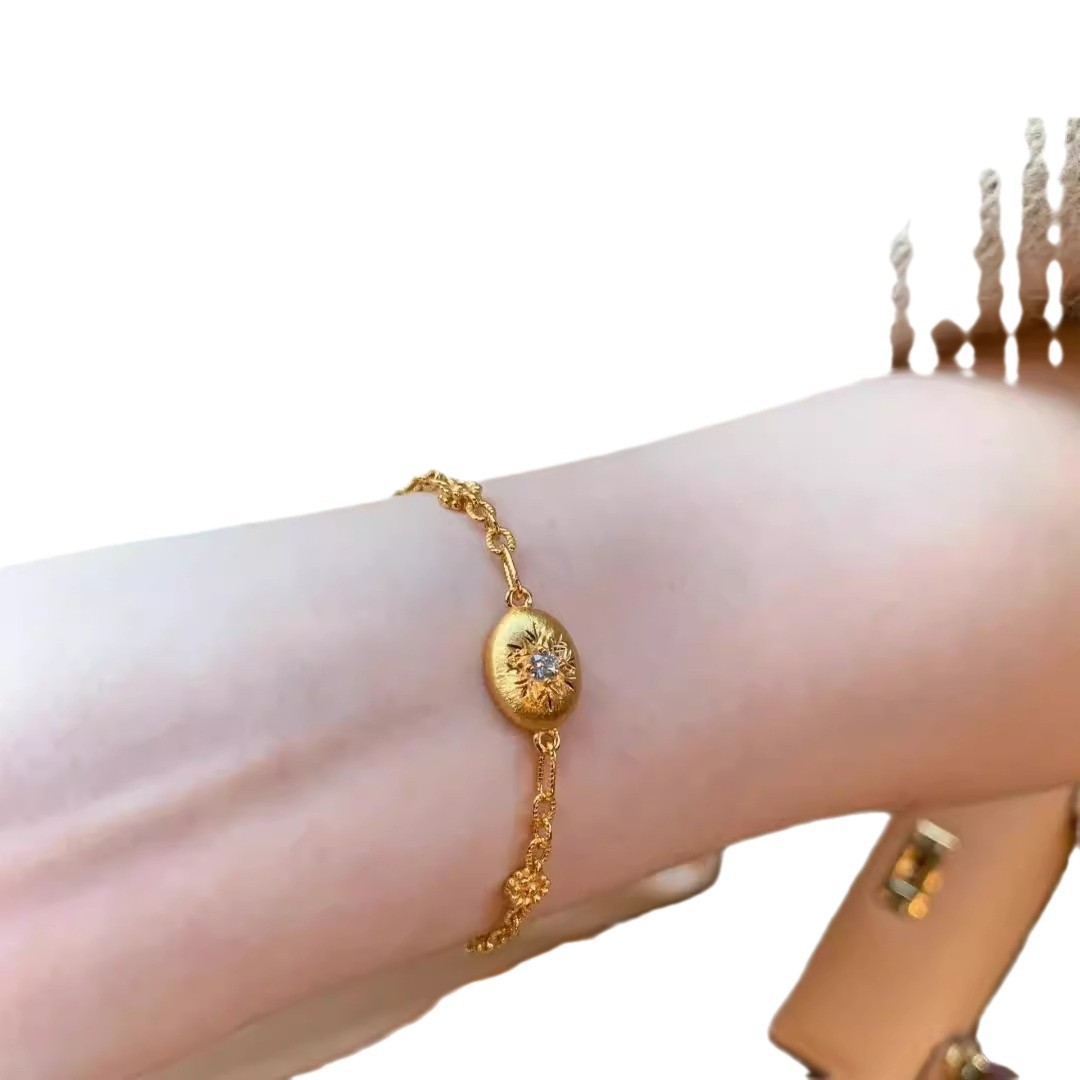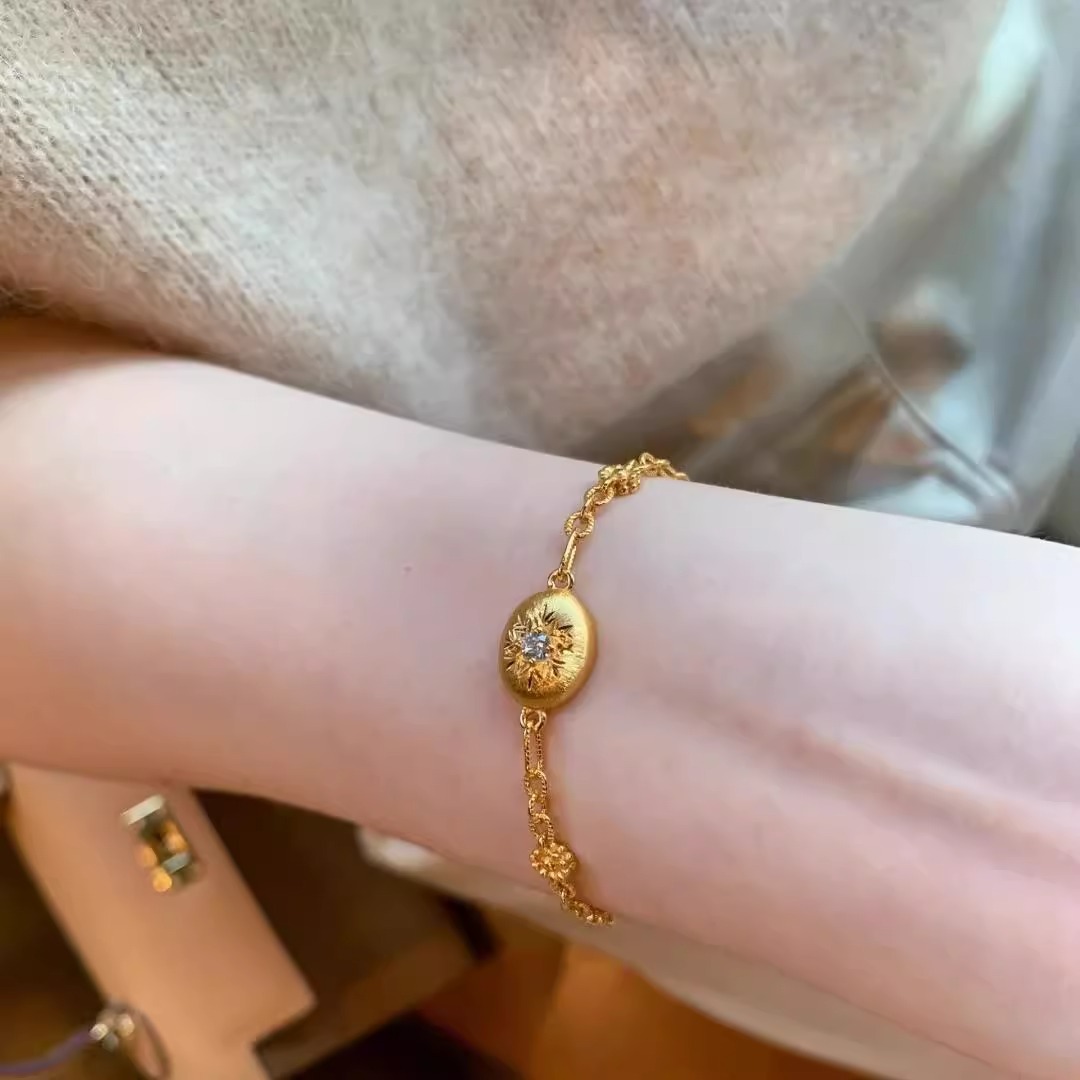 新款小众设计拉丝复古雕花中古风金色手串重工轻奢风气质女式手链