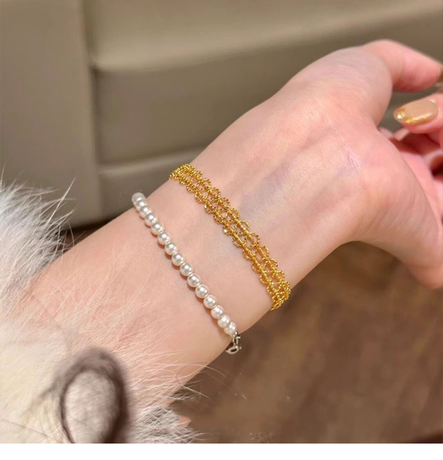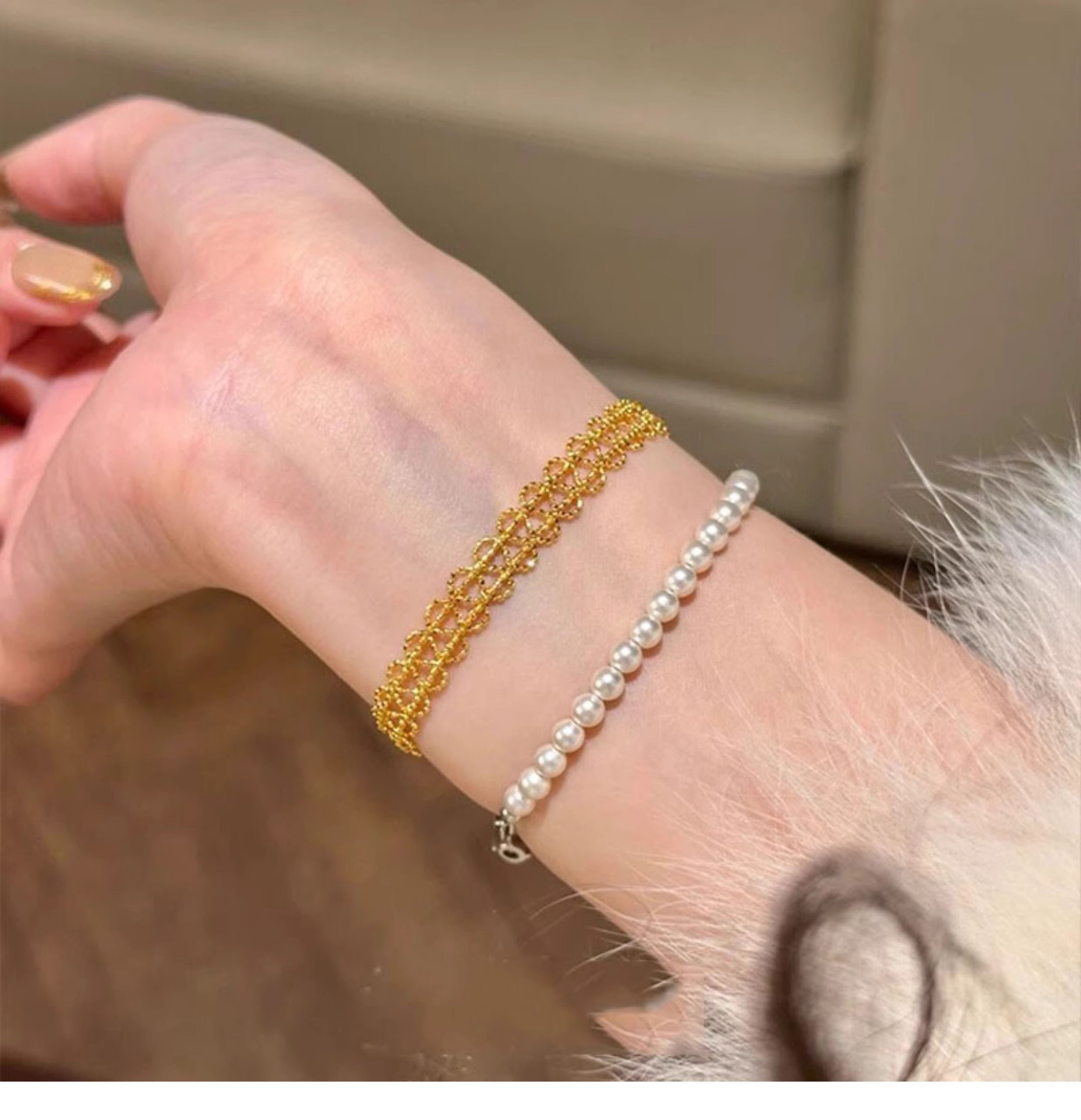 欧美时尚简约s925纯银ins风珍珠叠戴气质百搭手链七夕礼物