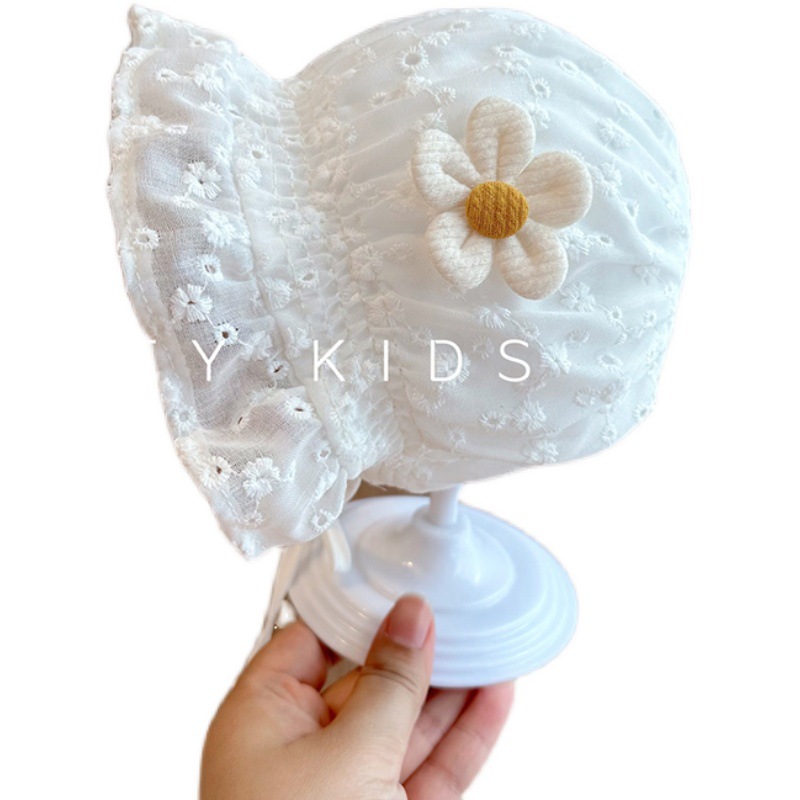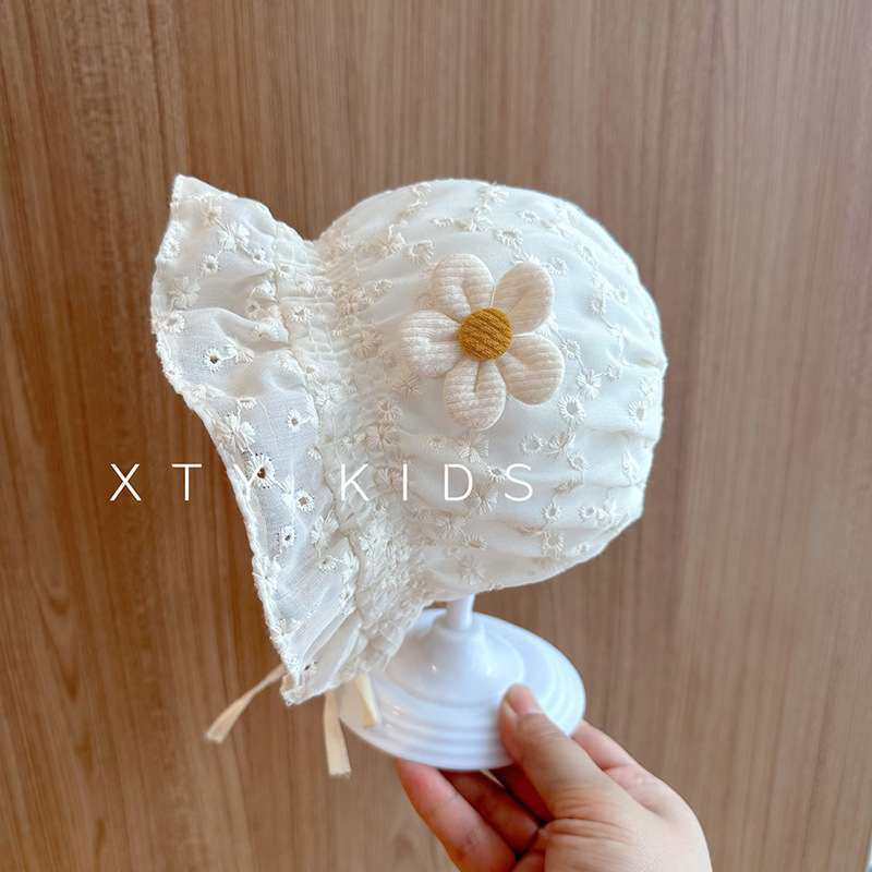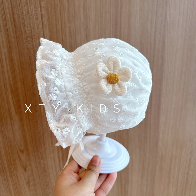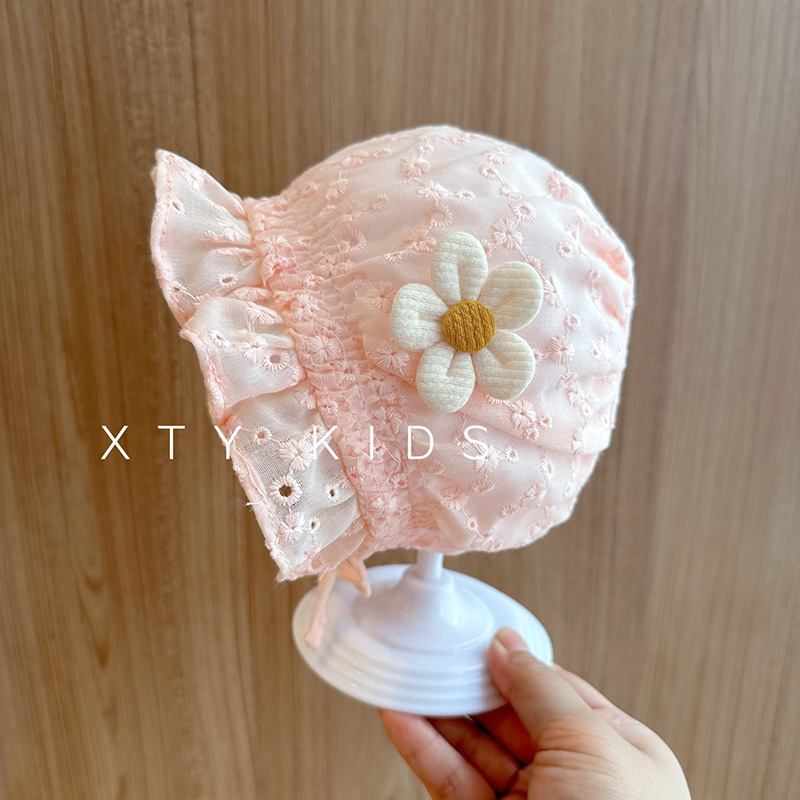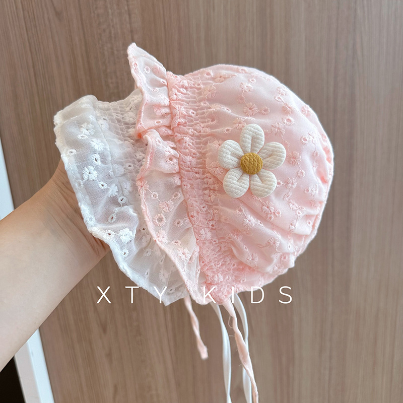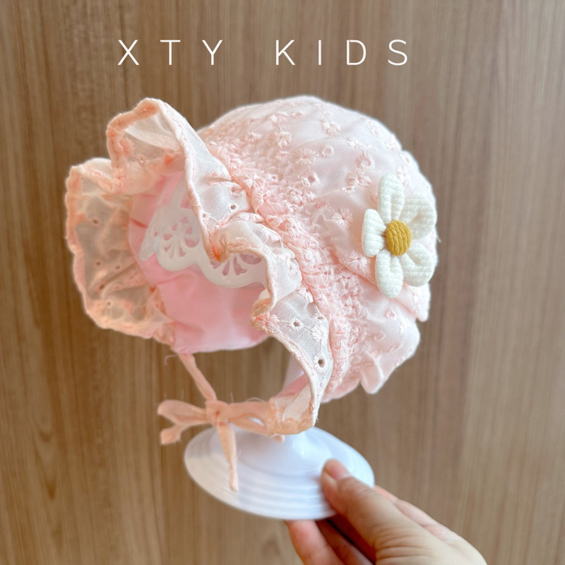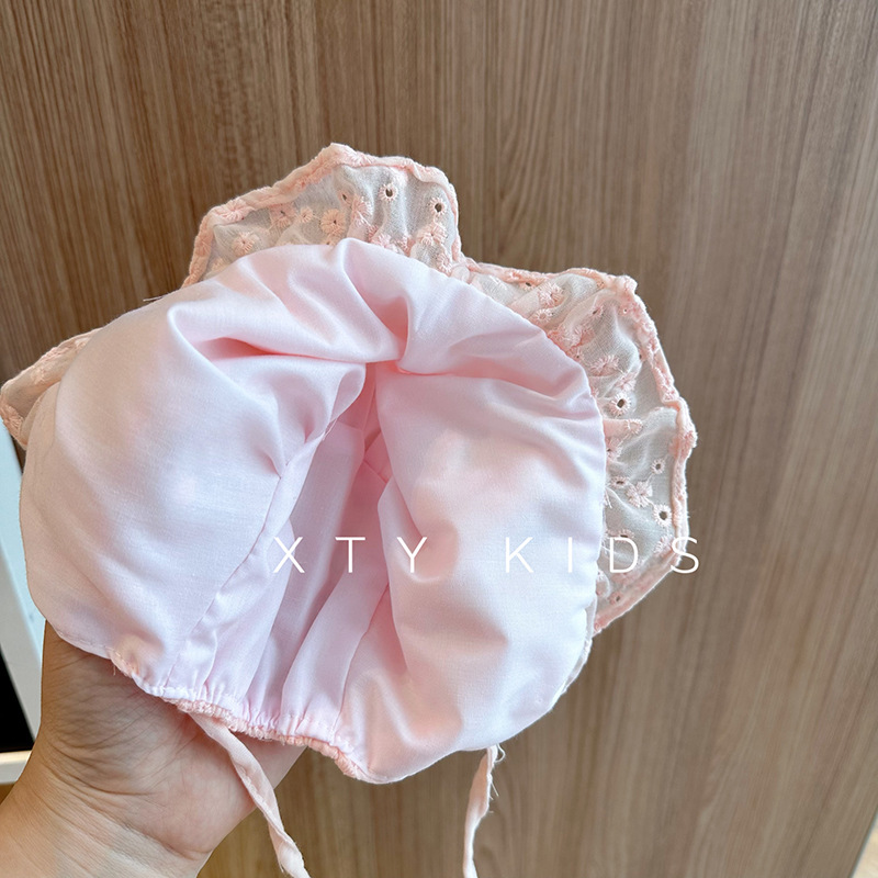 宝宝帽子夏季蕾丝花边公主遮阳帽可爱新生婴幼儿系带宫廷胎帽