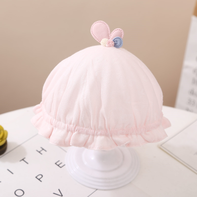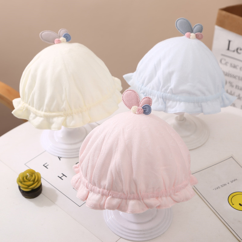 婴儿帽子春夏季薄款纱布胎帽女宝宝公主帽新生幼儿可爱超萌渔夫帽