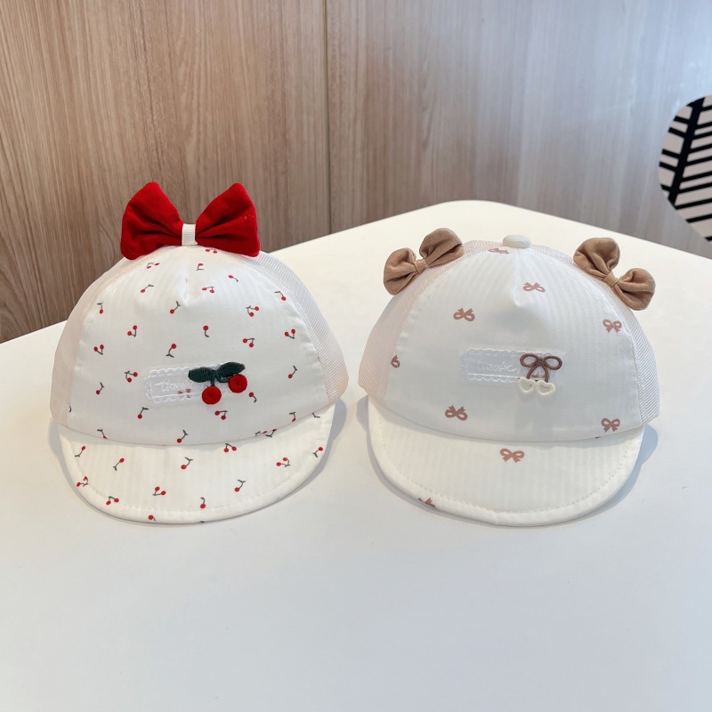 婴儿鸭舌帽夏季网纱透气遮阳新生儿护囟门胎帽清新樱桃宝宝防晒帽