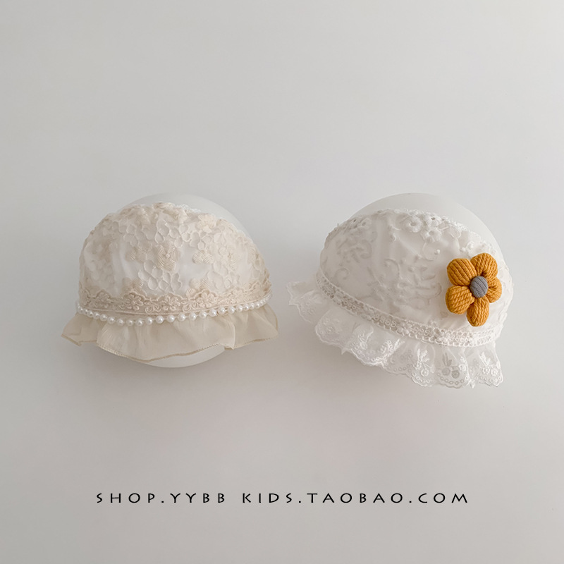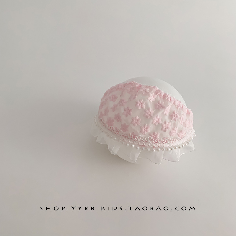 婴儿帽子夏季薄款透气护囱门胎帽女宝宝发带小月龄空顶小花囟门帽