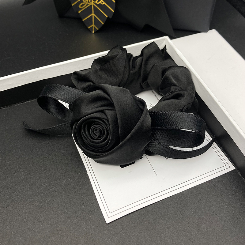 原创复古法式立体玫瑰花朵发饰女大肠缎面头绳高级气质后脑勺发圈