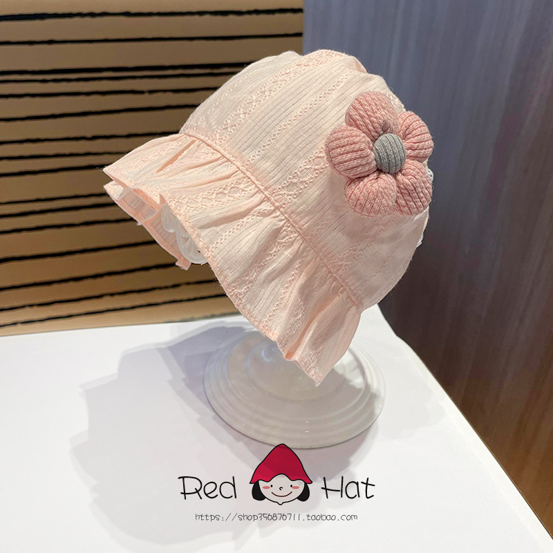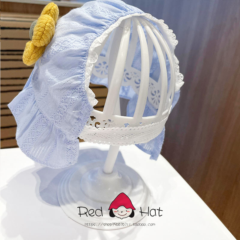 婴儿卤门帽子夏季网纱薄款纯棉满月7个月防风薄款公主可爱防风帽