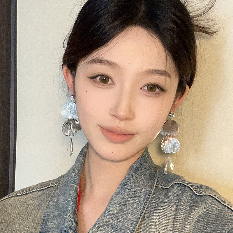 小众夸张设计感金属流苏叶子耳环新款高级感耳钉复古耳饰女