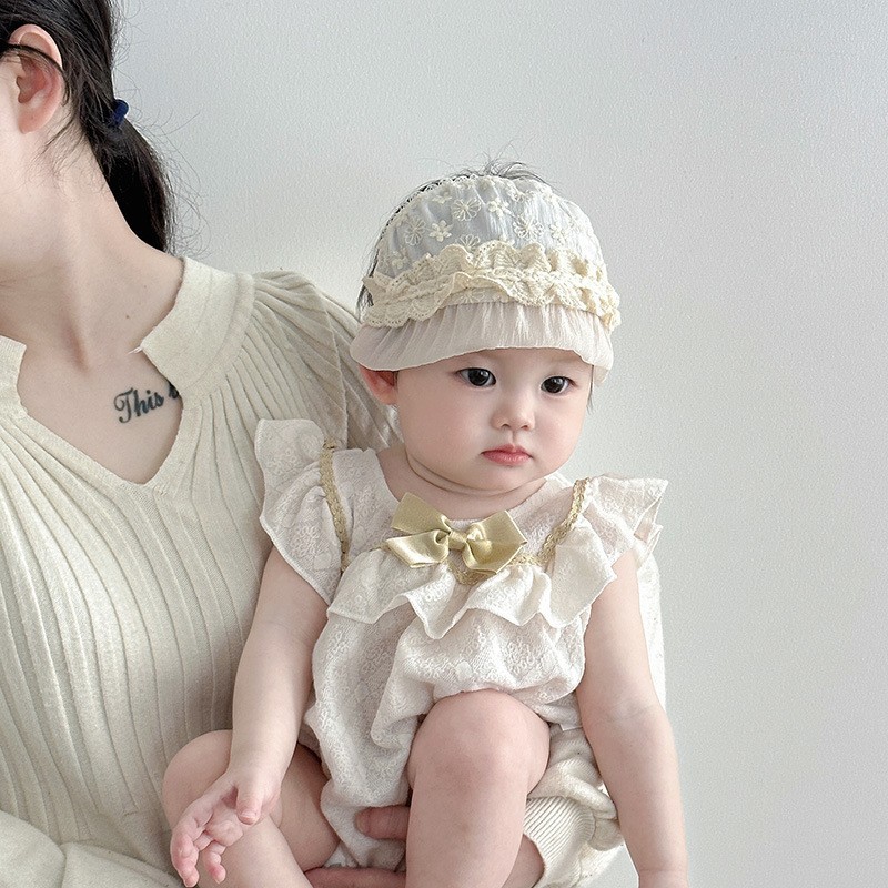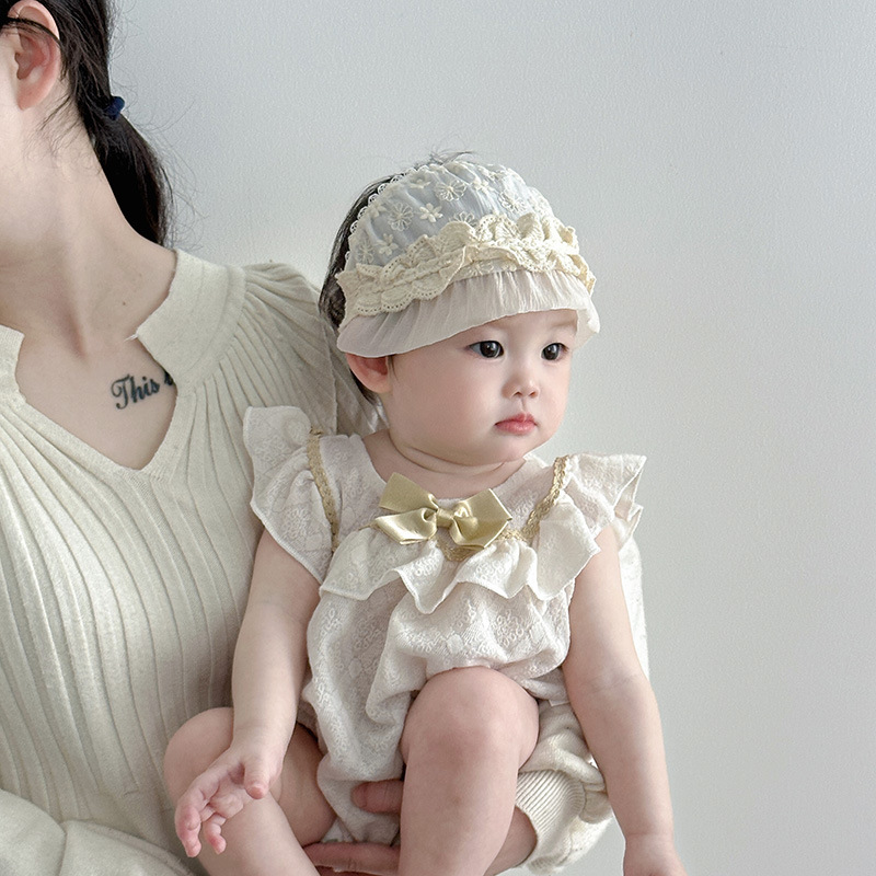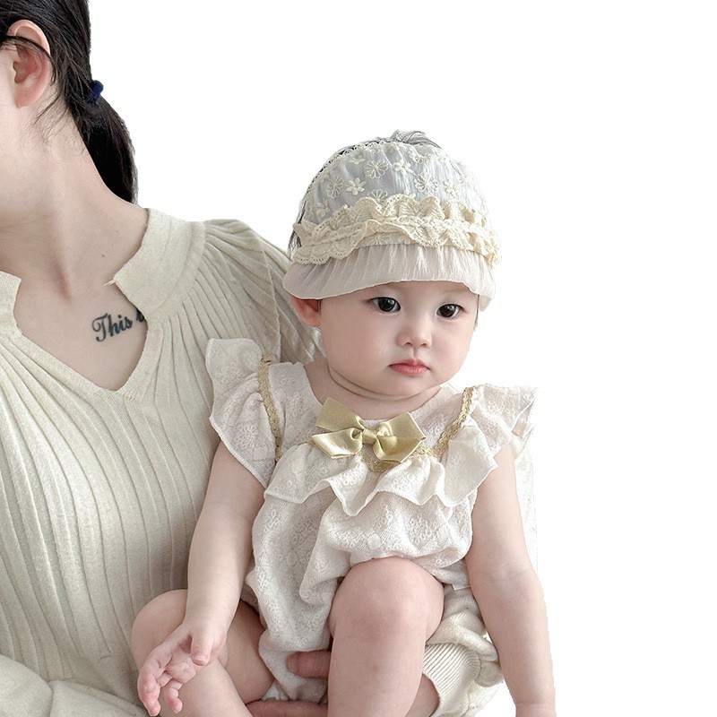 新生帽子夏季薄款透气护囱门胎帽甜美女宝宝婴幼儿遮阳囟门空顶帽