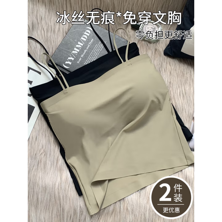 小吊带背心女打底抹胸外穿一字肩裹胸美背内搭带胸垫内衣春夏2件