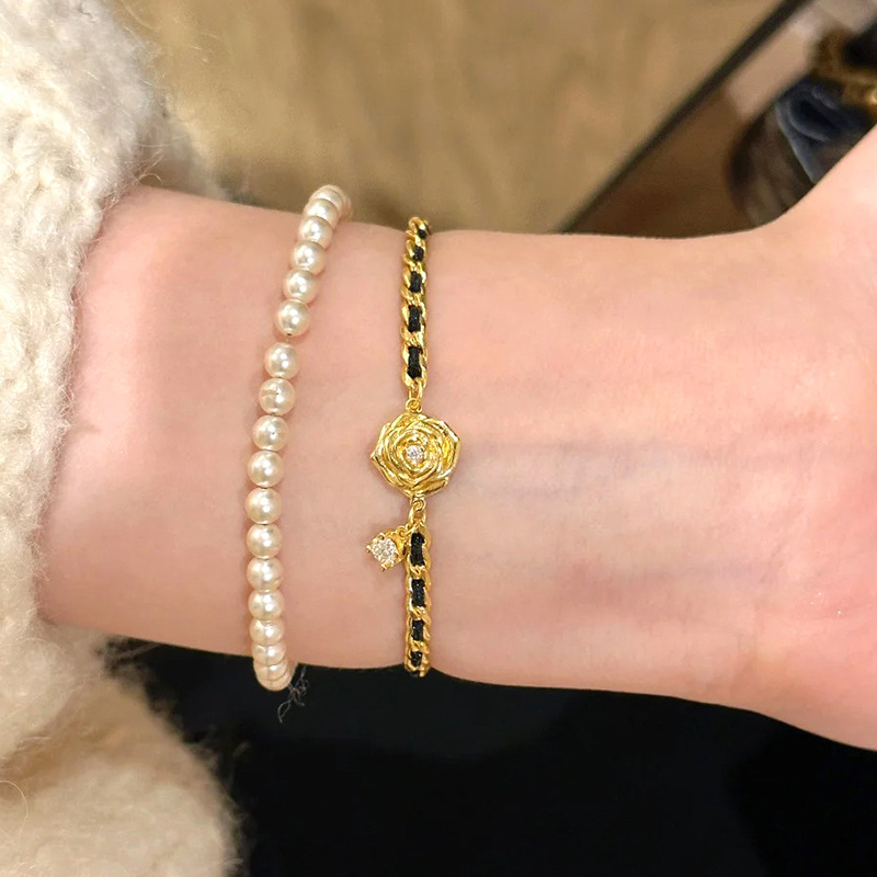 小红书爆款黑金山茶花手链女新款小香风轻奢手饰品一件代发