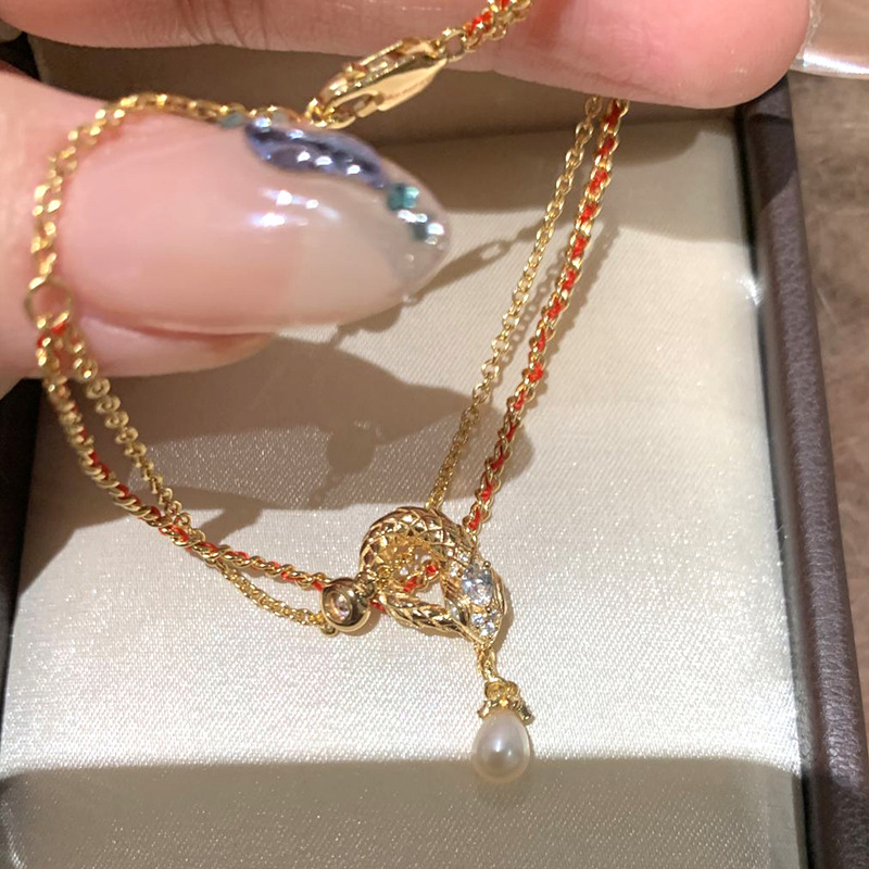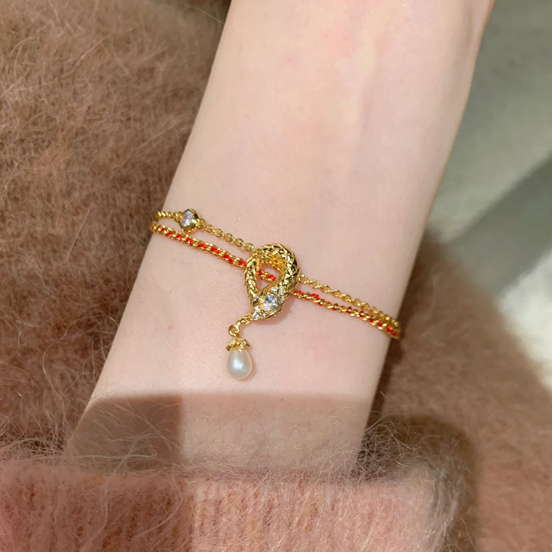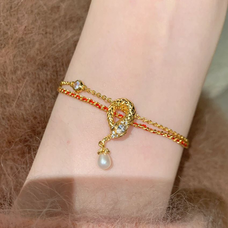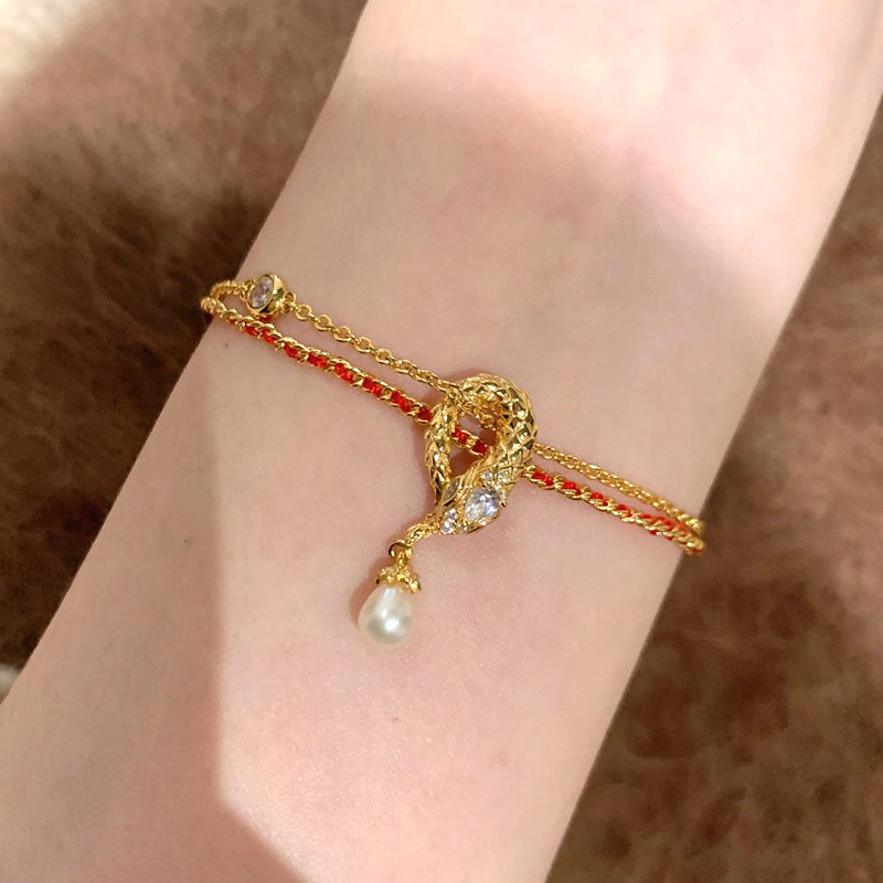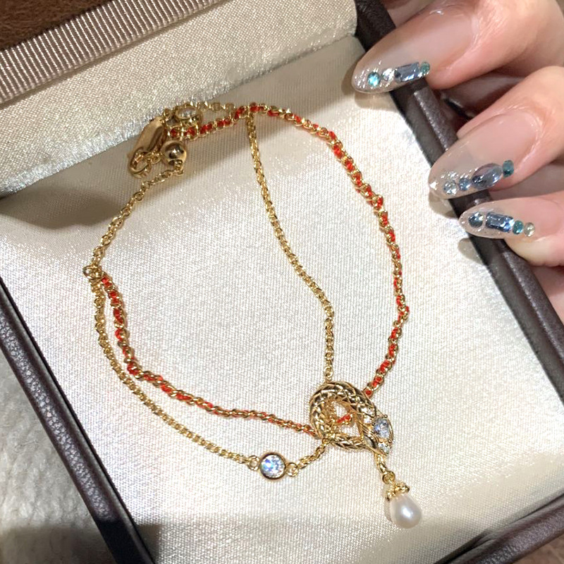 小红书爆款珍珠灵蛇流苏手链2025新款本命年生肖蛇形流苏红绳手饰