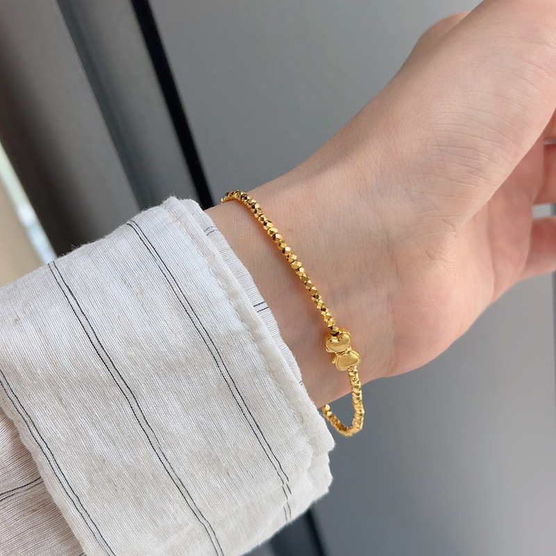 日韩气质珠子爱心吊坠项链女时尚小众设计感钛钢饰品18K金锁骨链