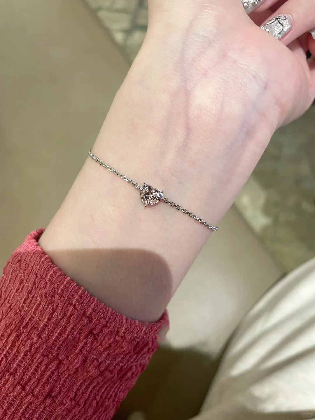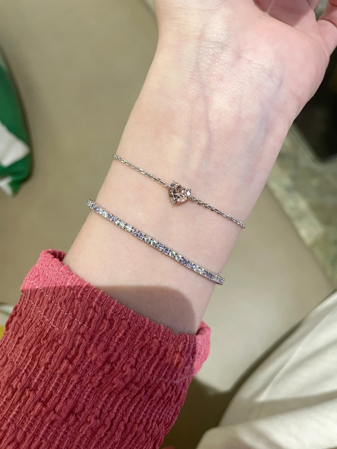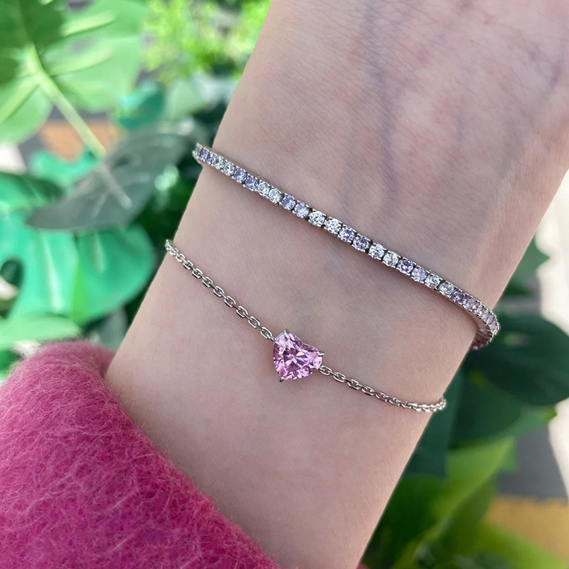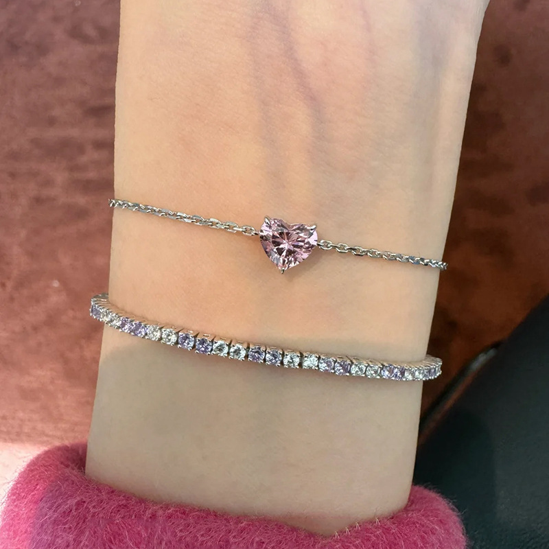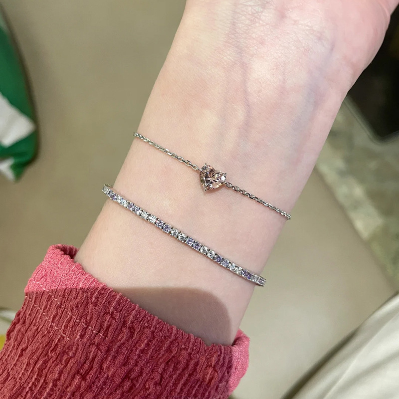 小红书爆款时尚莫桑爱心闪钻细款手链女轻奢高级感手饰