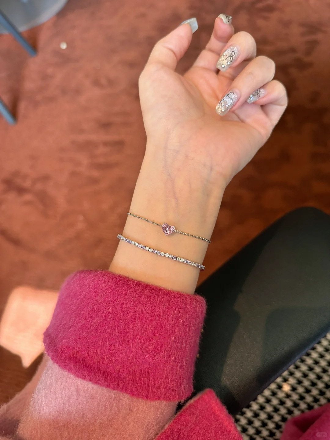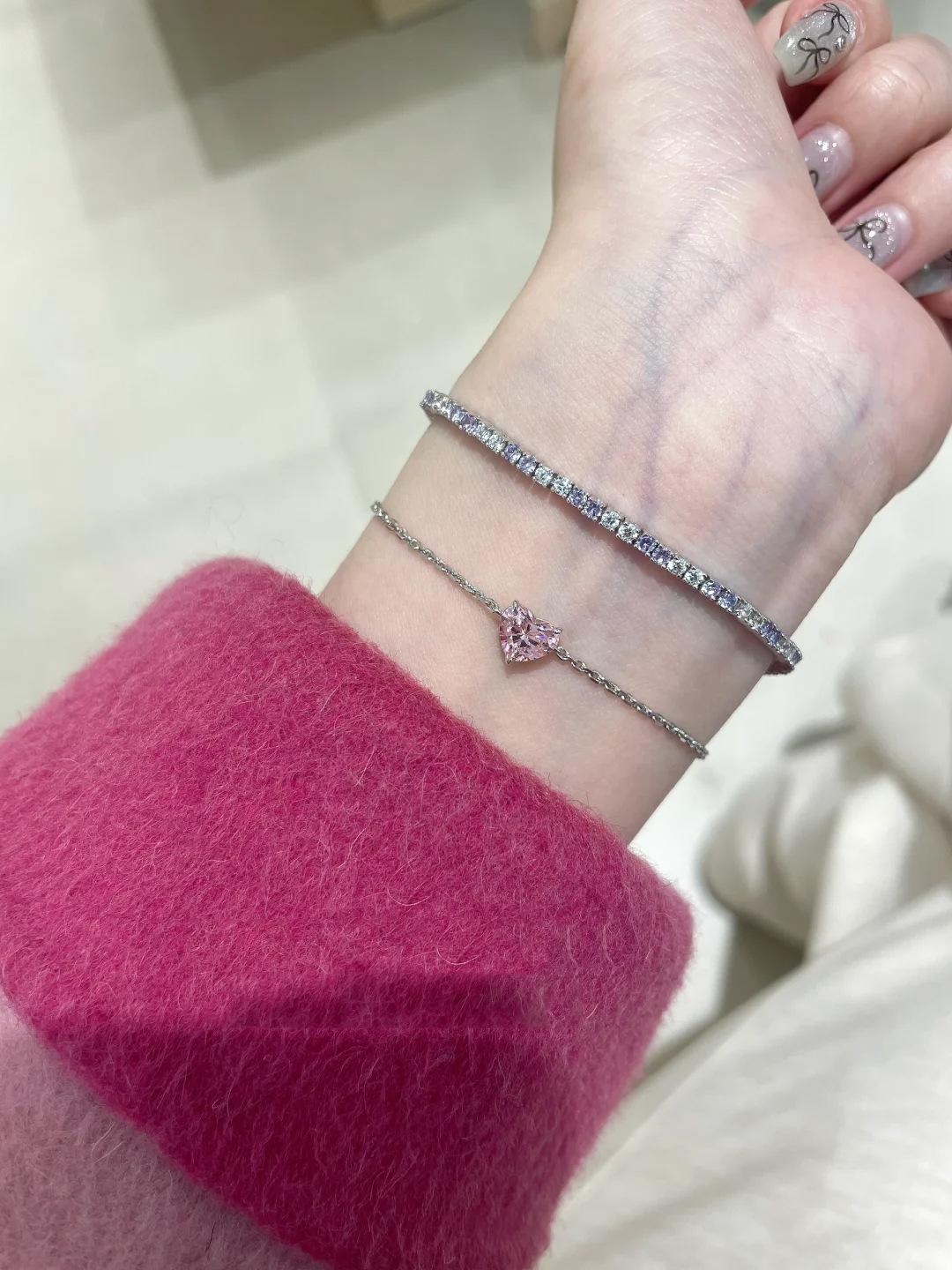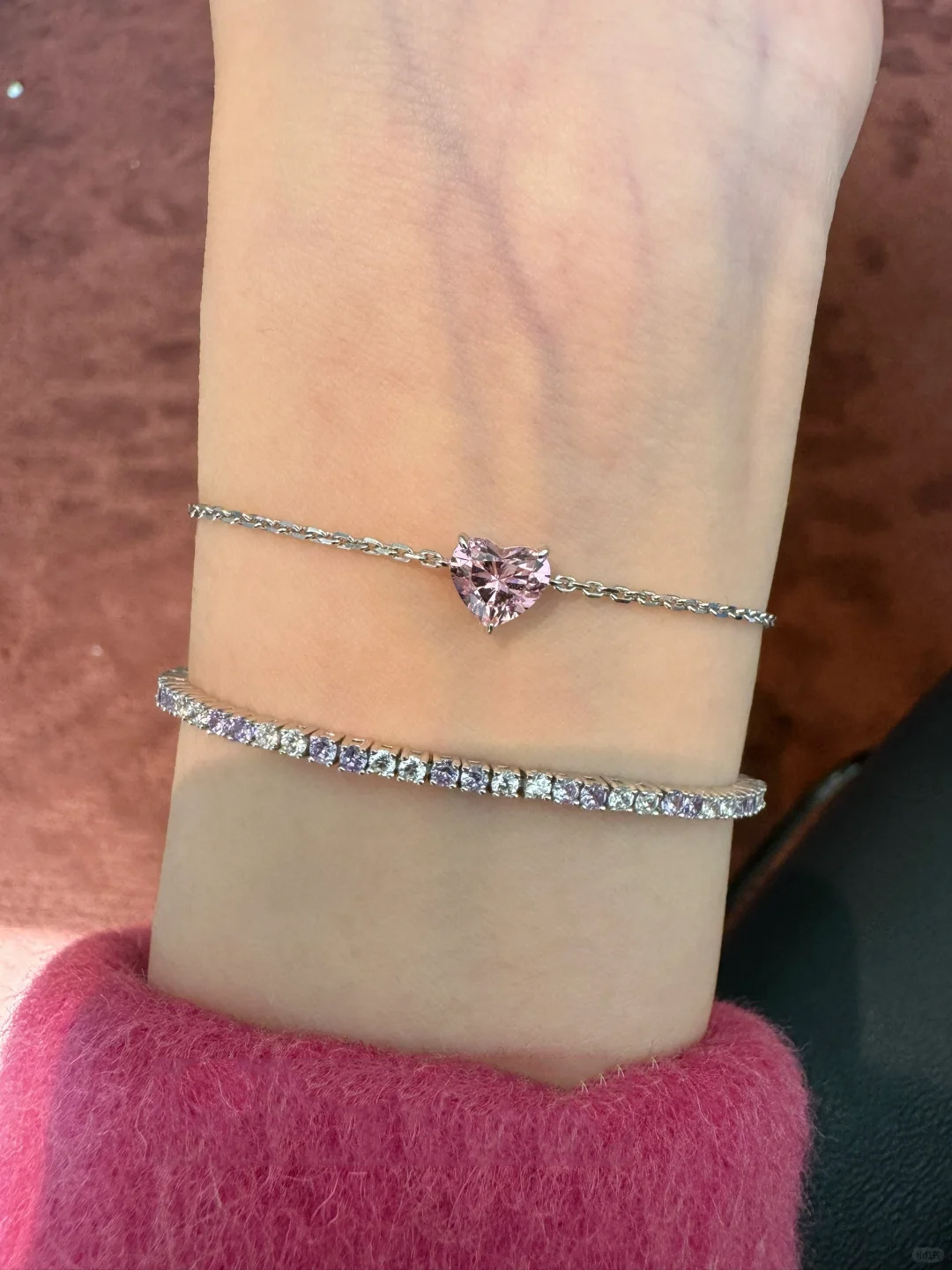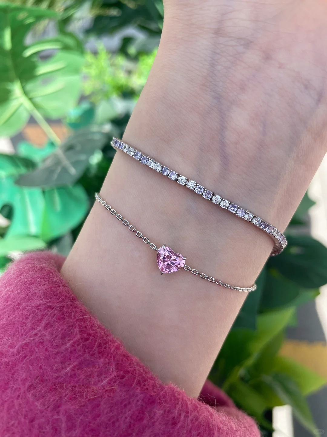 小红书爆款时尚莫桑爱心闪钻细款手链女轻奢高级感手饰