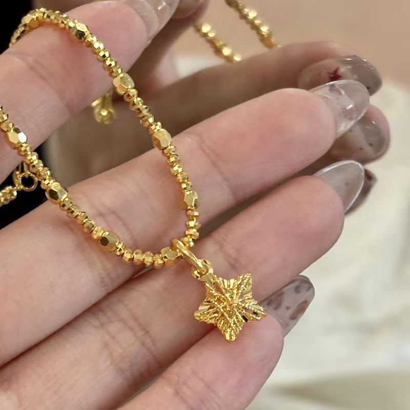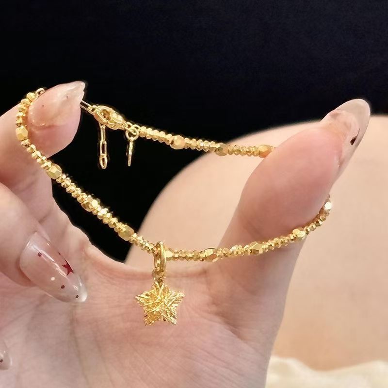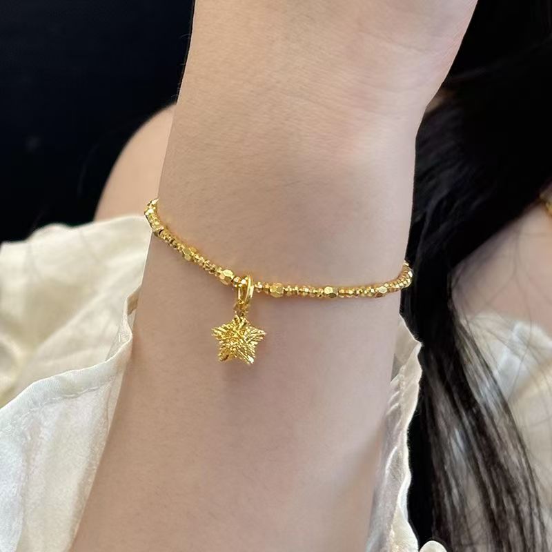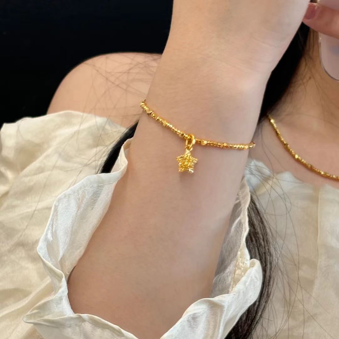 小红书爆款爆闪碎冰冰星星手链女古法碎金串珠五角星手串