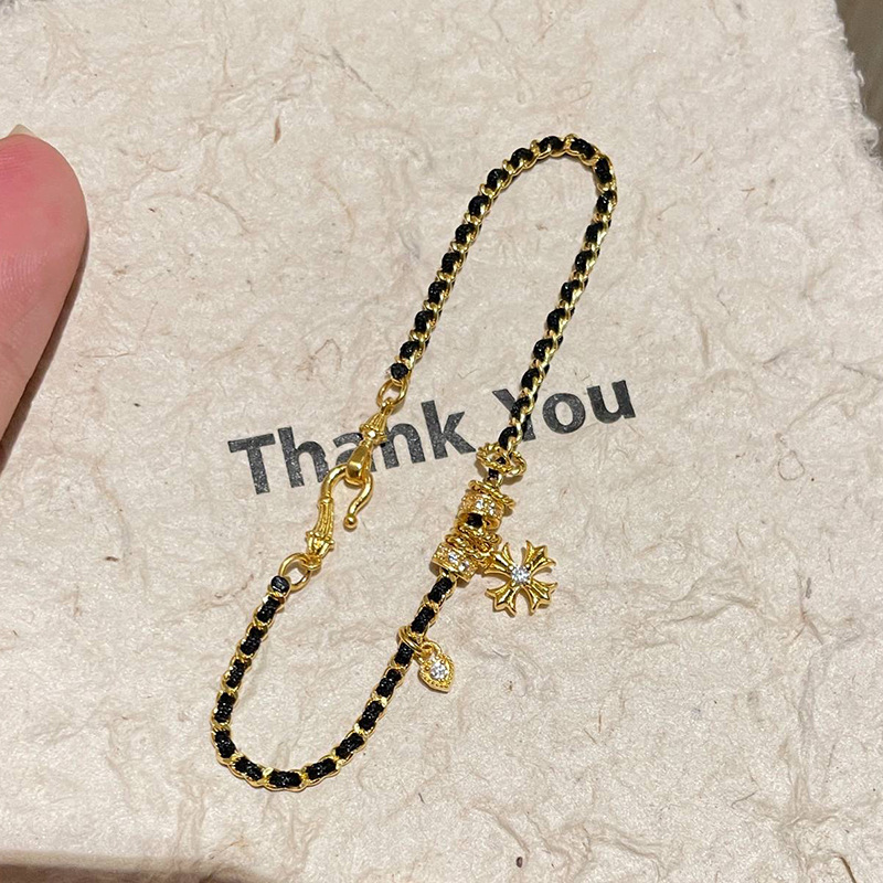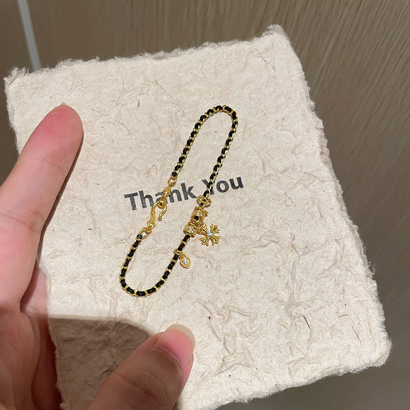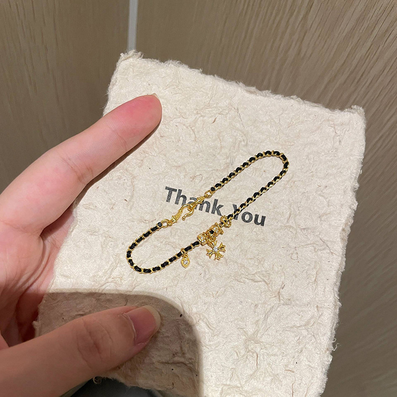 小红书爆款DIY十字架黑金手链新款时尚轻奢编织手环