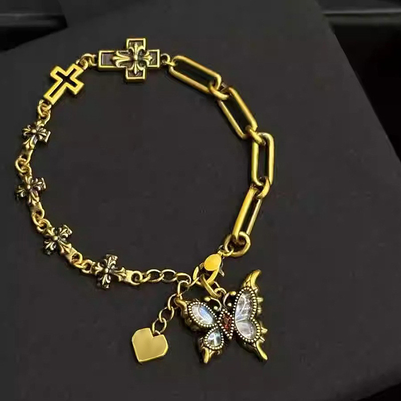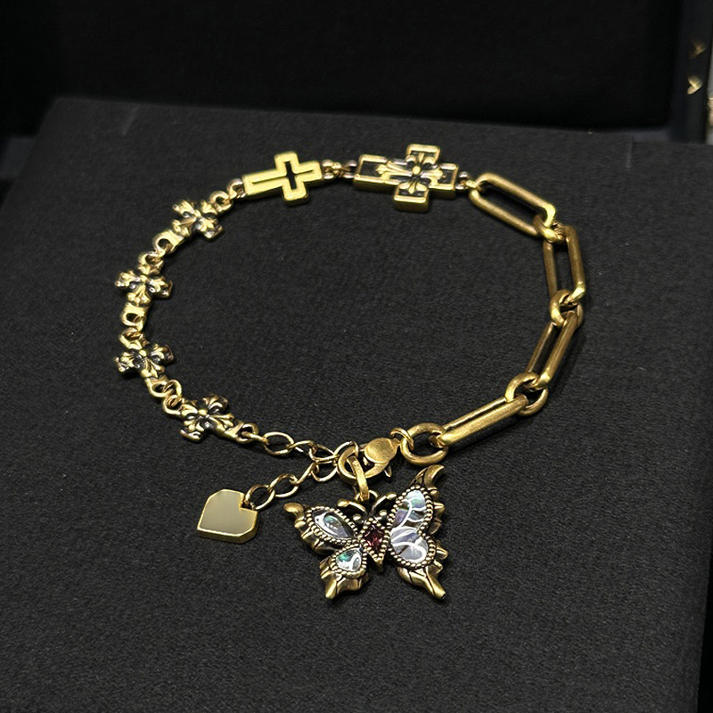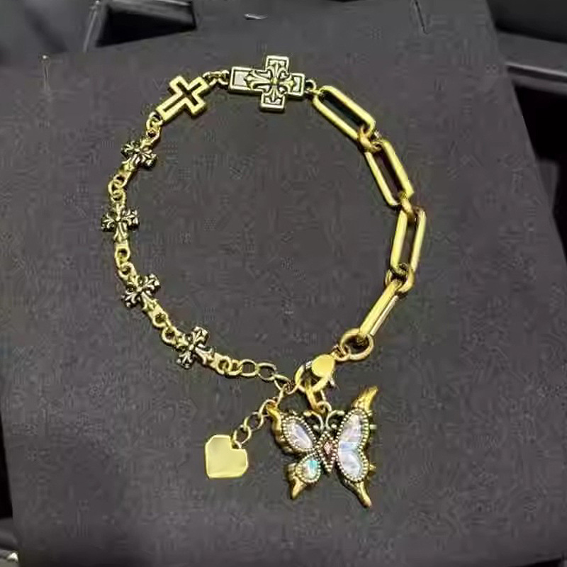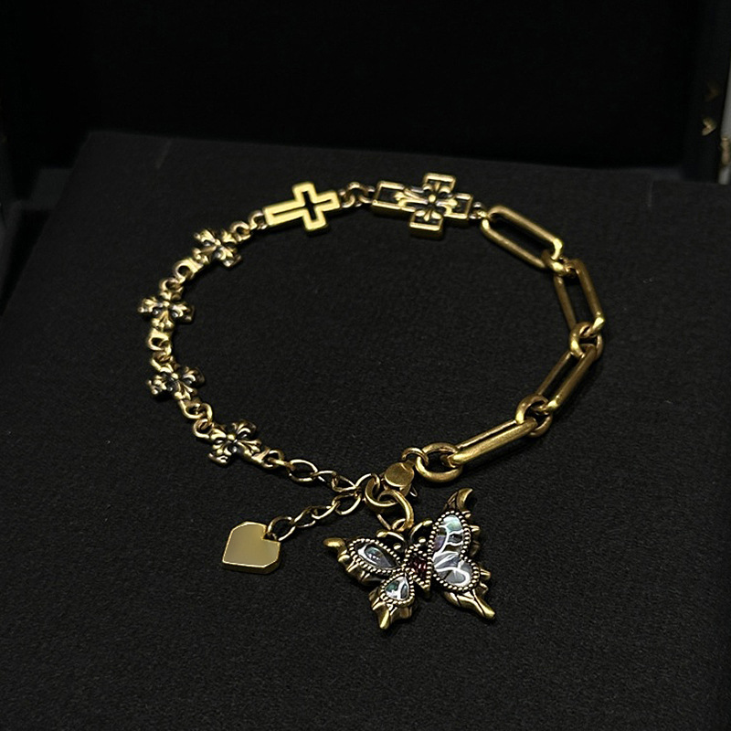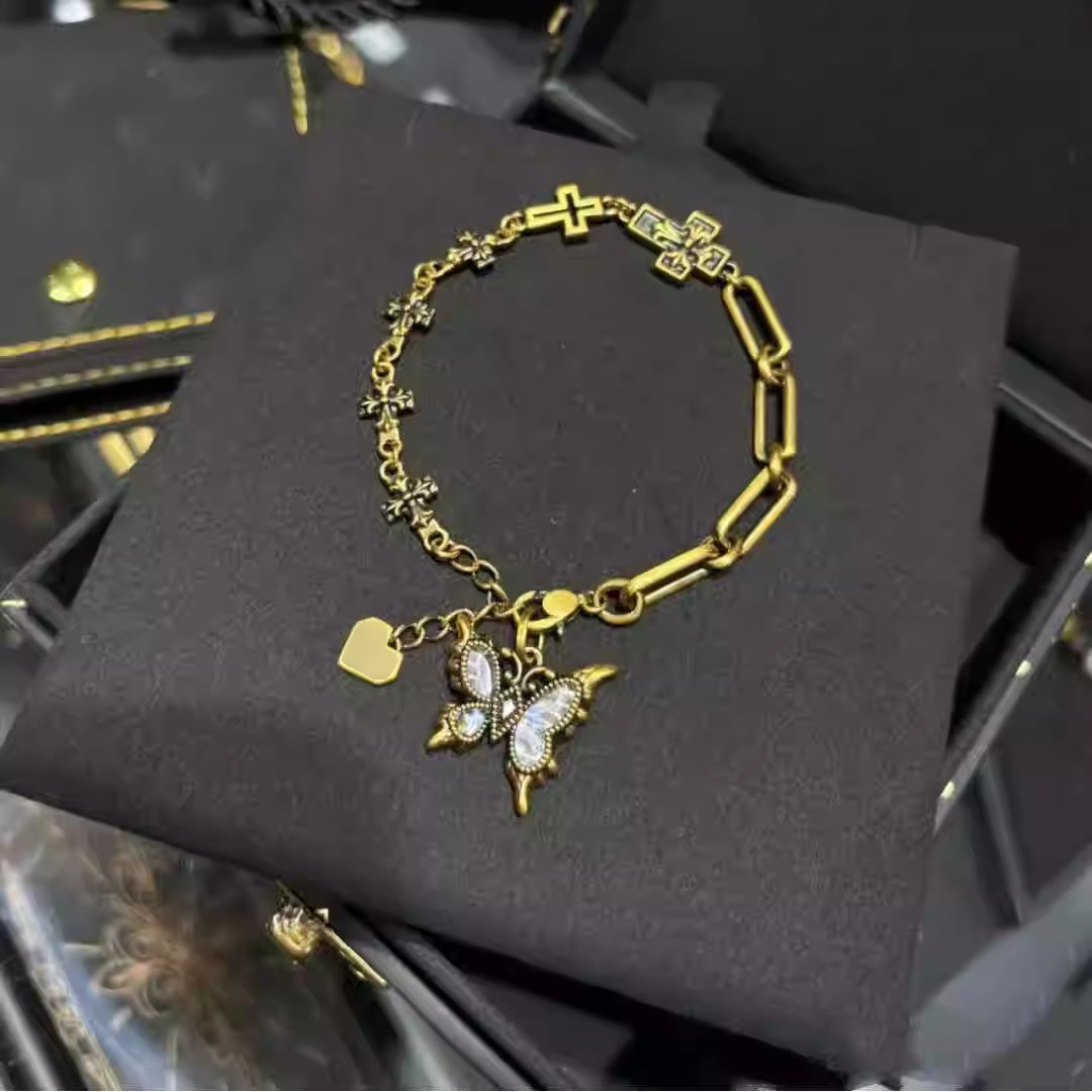 小红书爆款复古莺尾花蝴蝶手链女流光十字架鲍鱼贝蝴蝶精致手饰