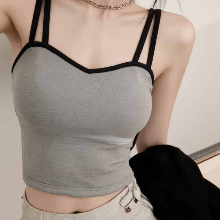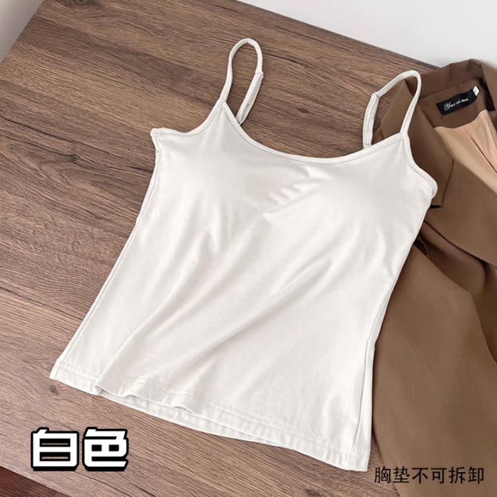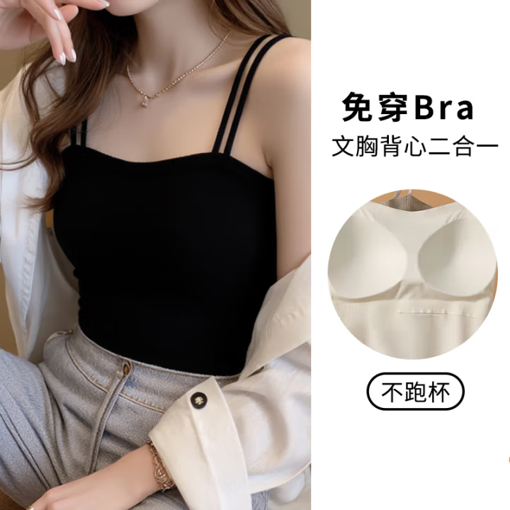 小吊带背心女可外穿短款抹胸修身显瘦美背胸垫一体纯欲辣妹打底衫 【双肩带-黑】 辣妹纯欲 均码 70-140斤
