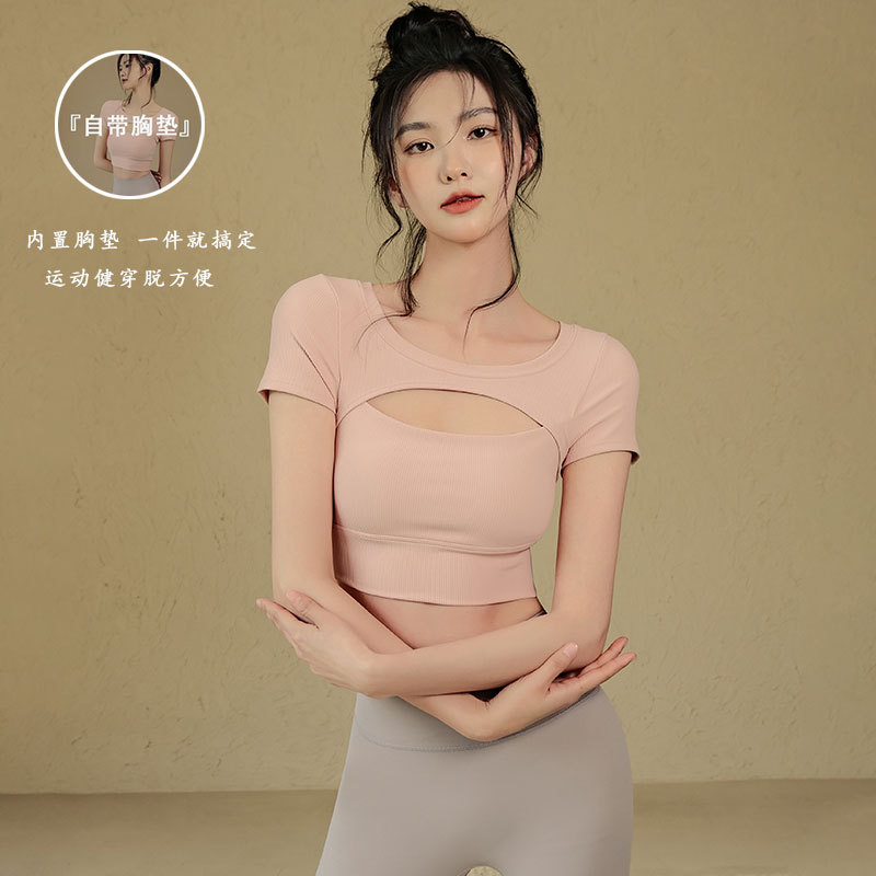 夏季健身运动上衣女紧身收腰显瘦短款瑜伽服镂空性感美背短袖T恤