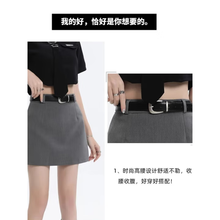 西装包臀半身裙女夏季新款高腰显瘦小个子a字裙学院风短裙 灰色 M