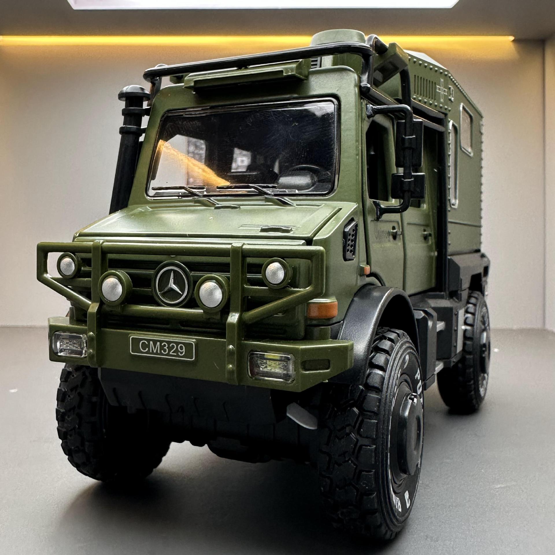 驰美合金1:28车模大驰乌尼莫克越野车回力玩具车声光模型摆件品藏