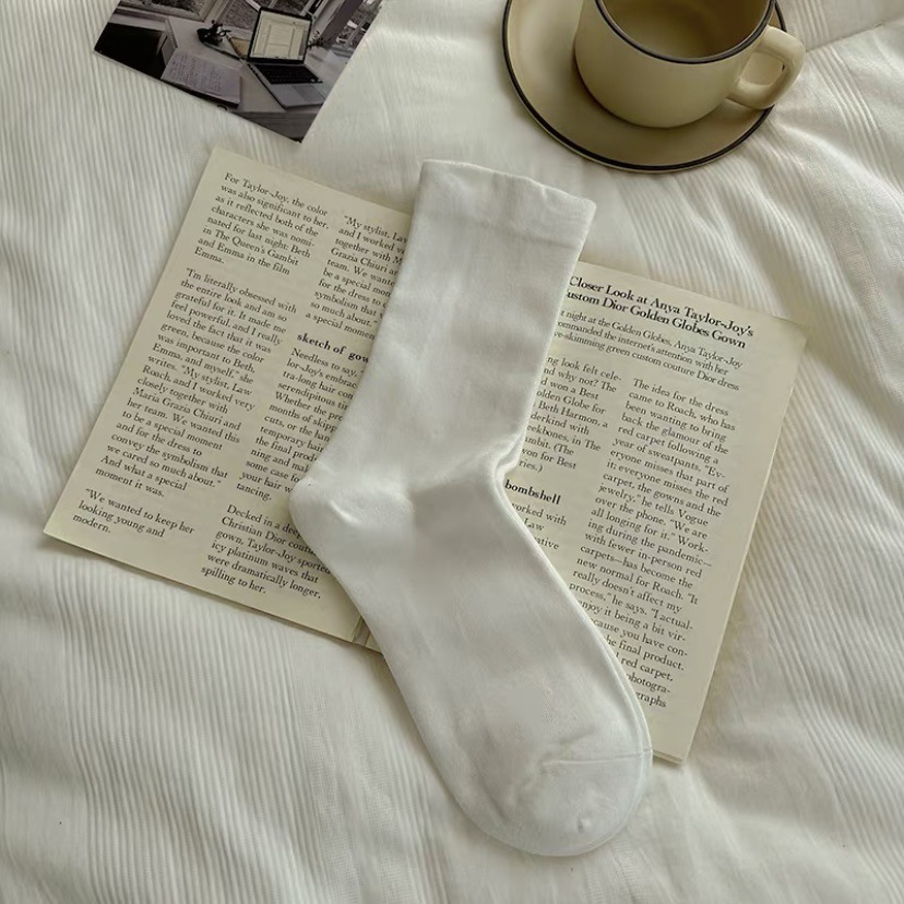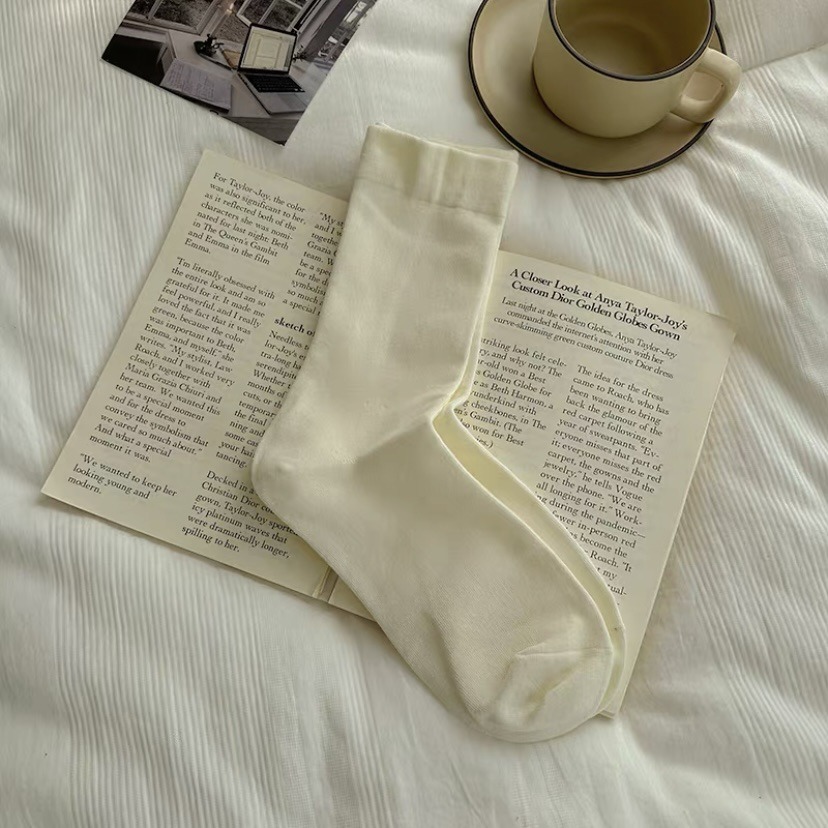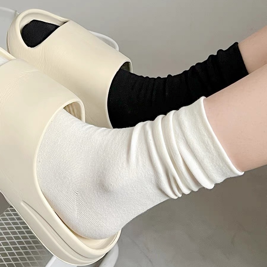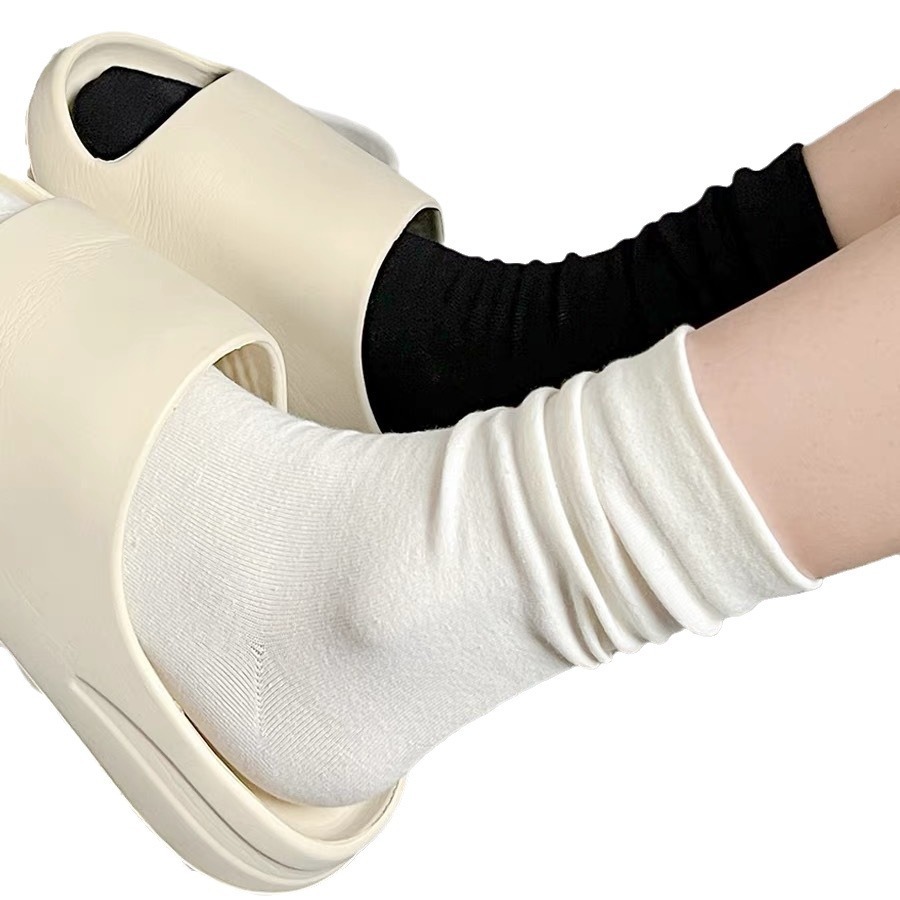 无骨月子袜学生纯色袜子女简约百搭中筒袜ins夏季时尚情侣堆堆袜
