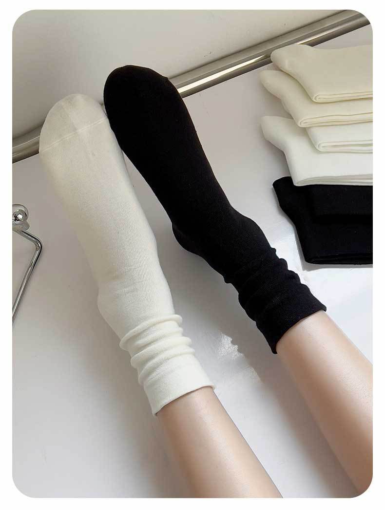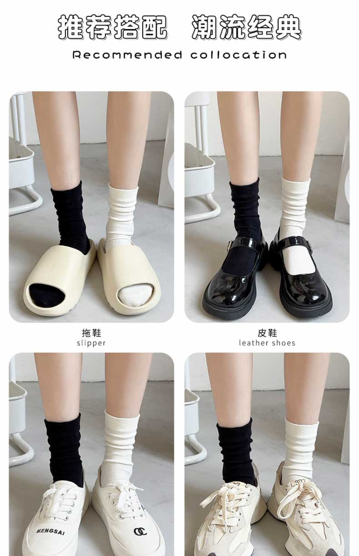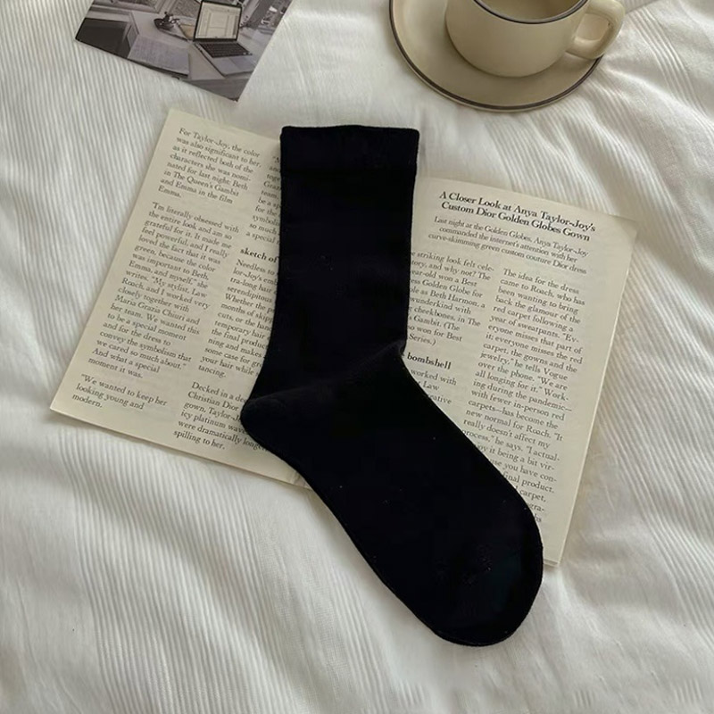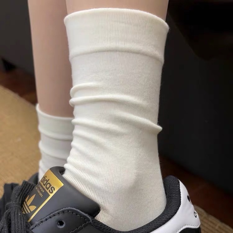 无骨月子袜学生纯色袜子女简约百搭中筒袜ins夏季时尚情侣堆堆袜