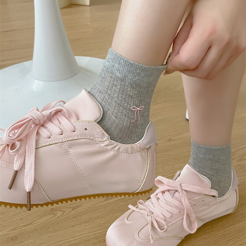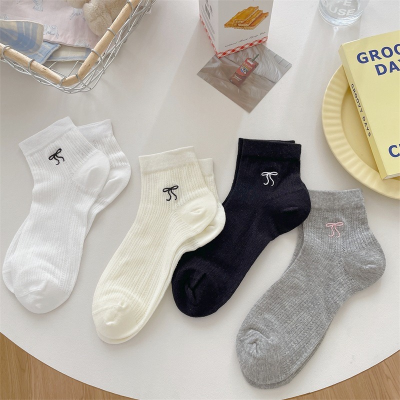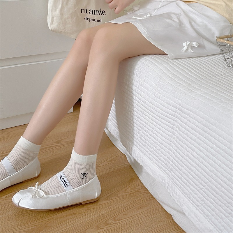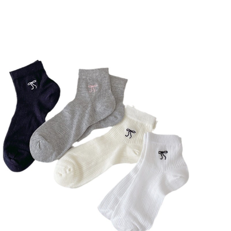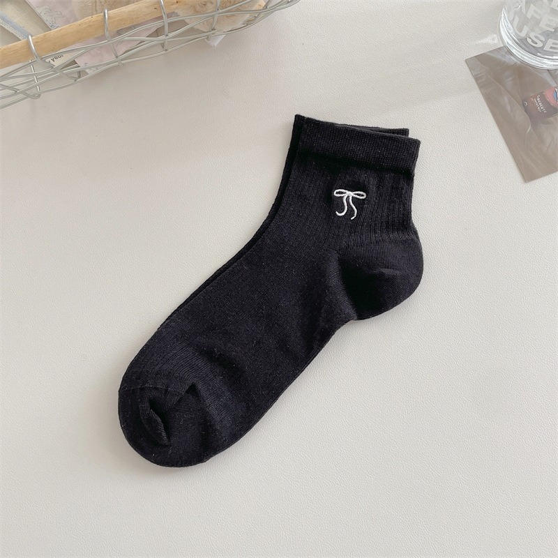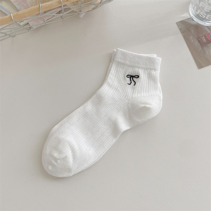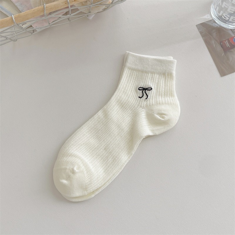 网红蝴蝶结刺绣短筒袜子女春夏韩国ins网眼透气薄款jk纯棉船袜