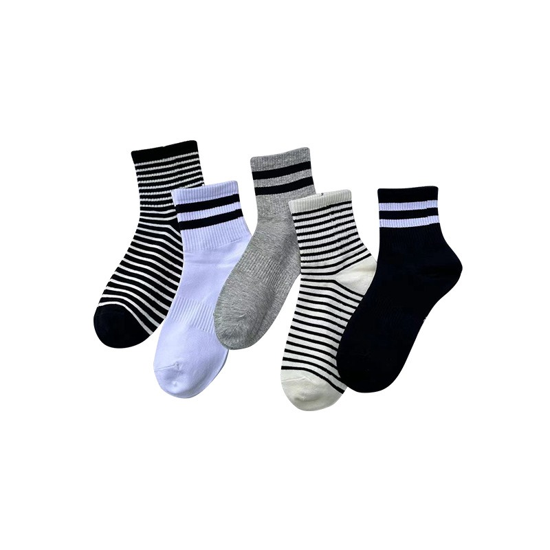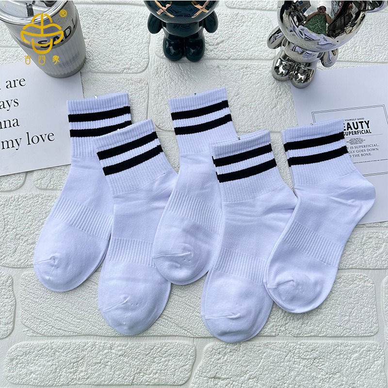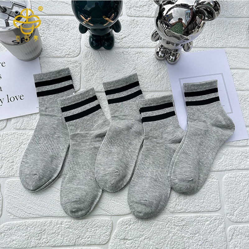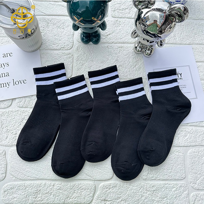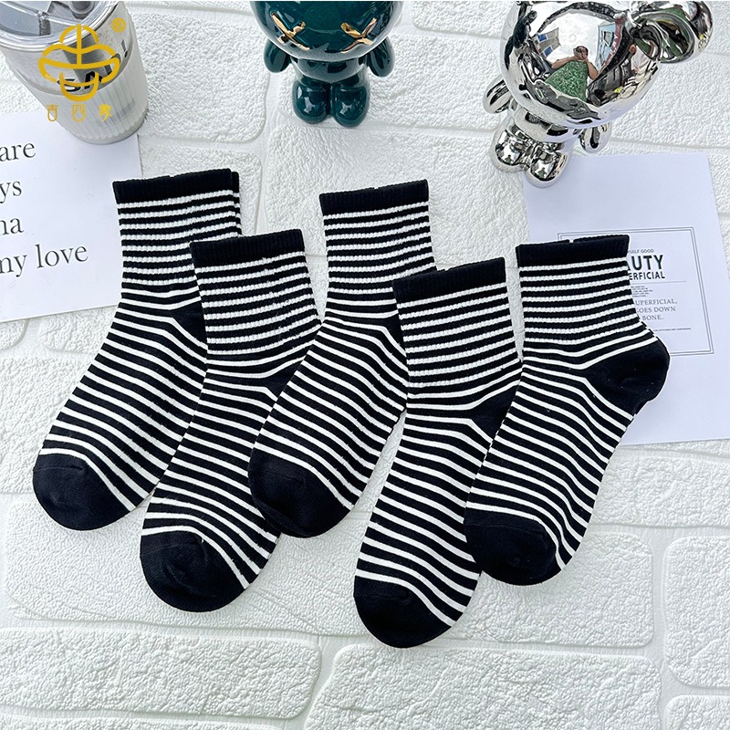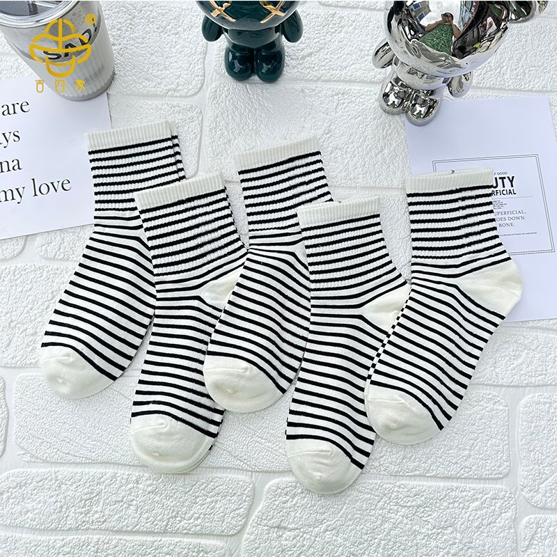 吉四象袜子女秋冬新款条纹中筒袜精梳棉学院风简约百搭休闲中筒袜