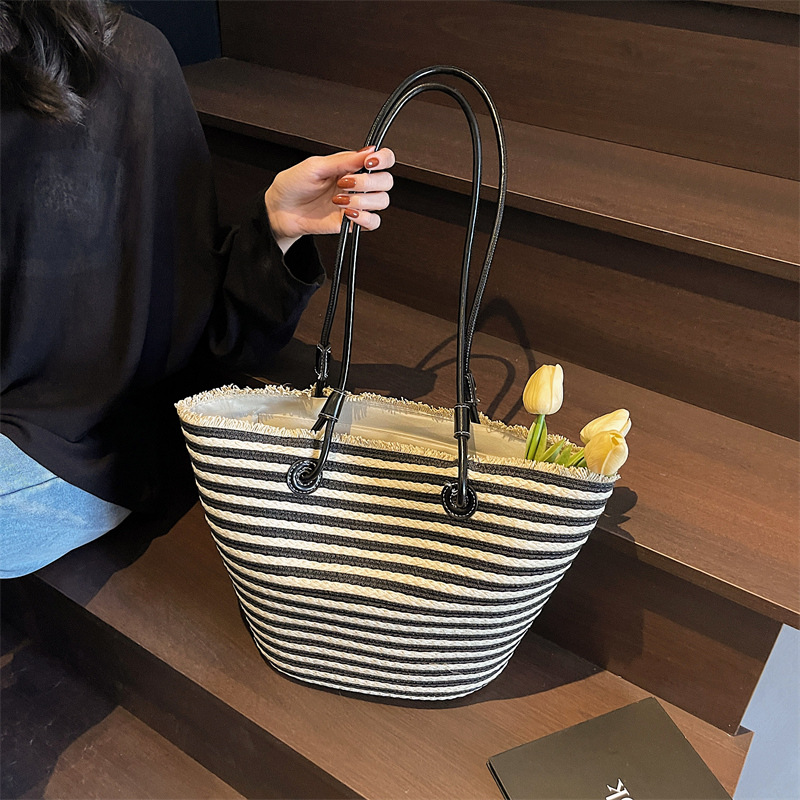 新款自制肌理感波点帆布包女慵懒风大容量百搭通勤手提腋下包
