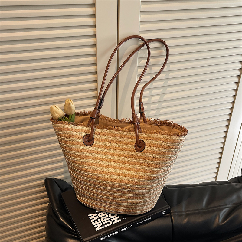 海边沙滩度假编织包2025夏季新款简约休闲草编包高级感百搭单肩包